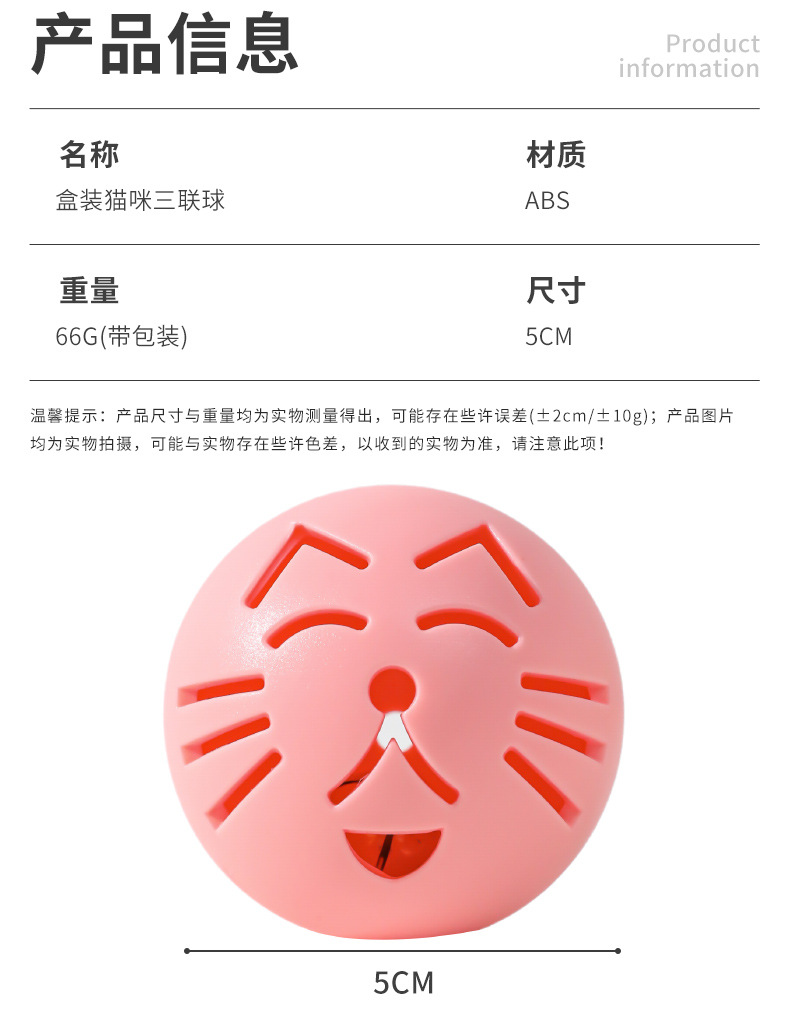 | Color | Bola triple de gato en caja - campana + bola de menta + bola flash |