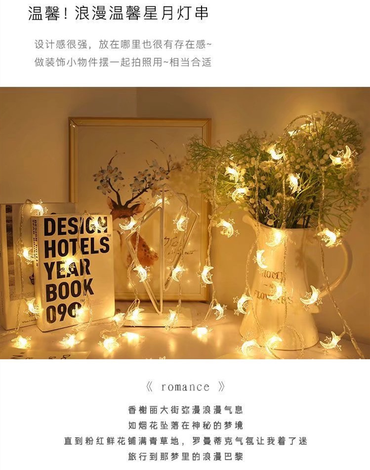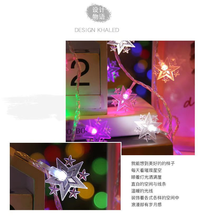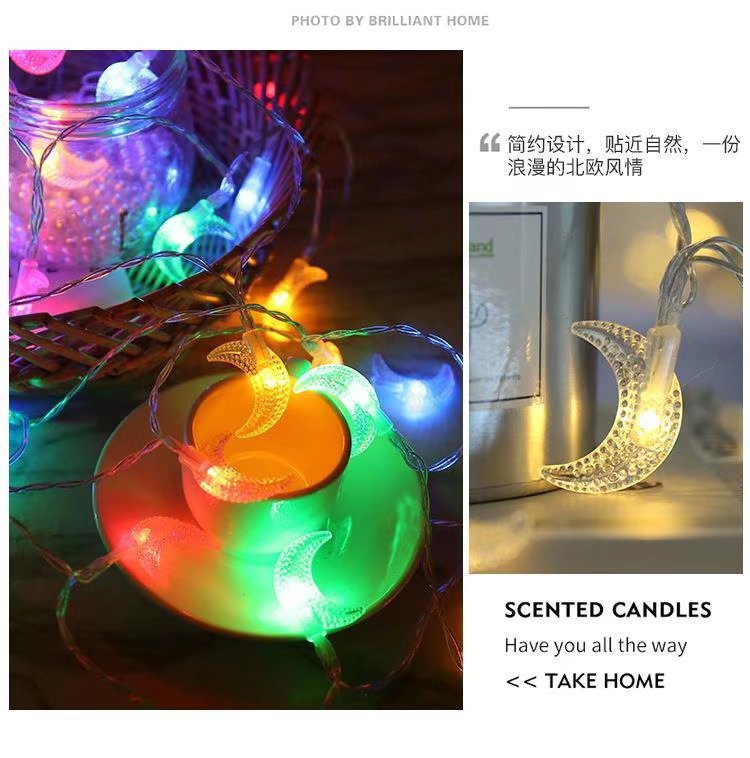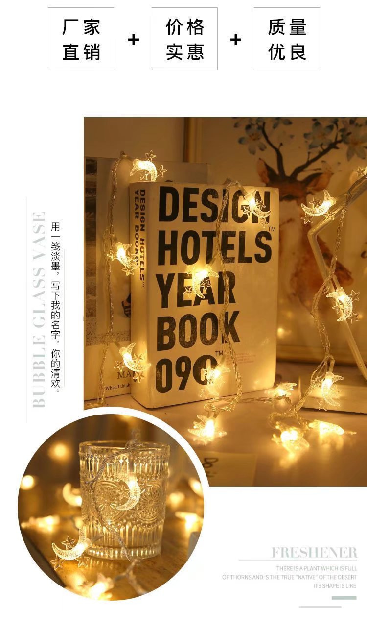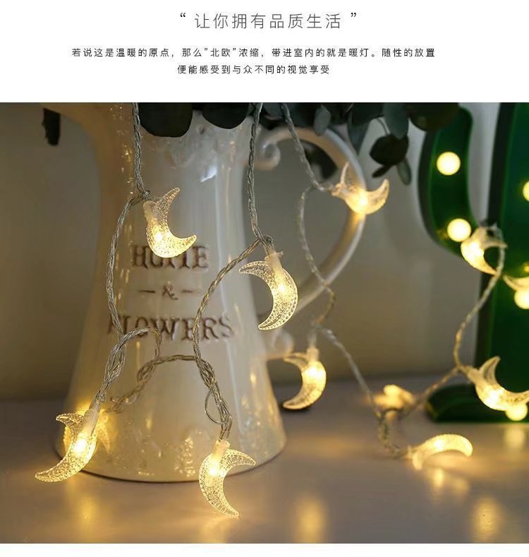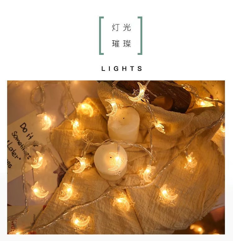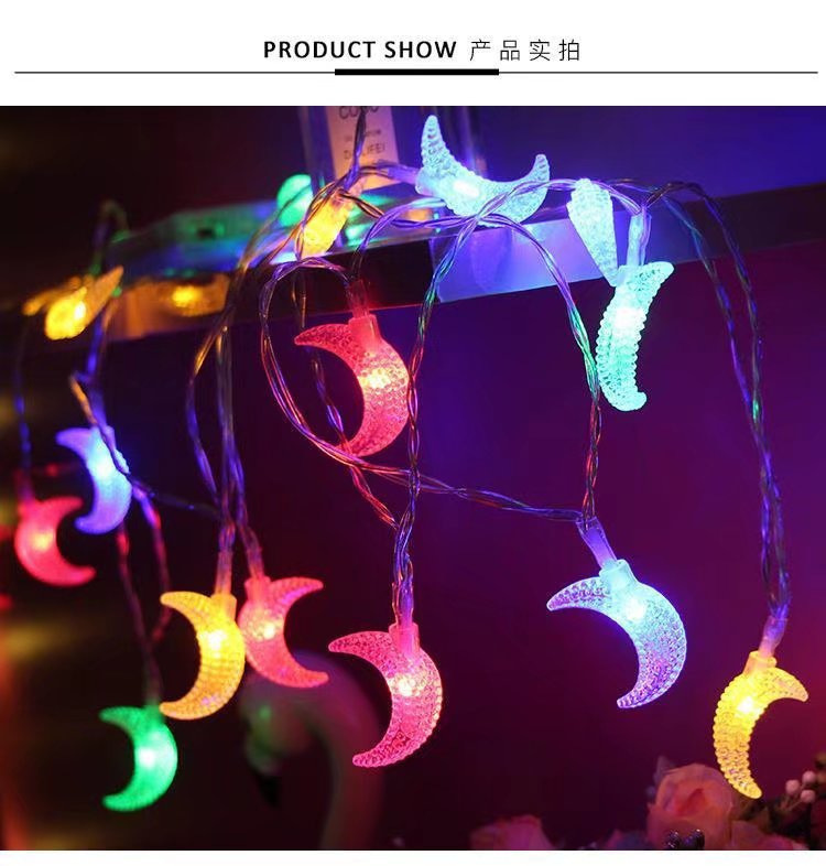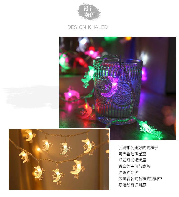 LED estrella de pentaco de luna decoración de luz de atmósfera musulmana pequeña cadena de luz de color al por mayor de luz de atmósfera de vacaciones