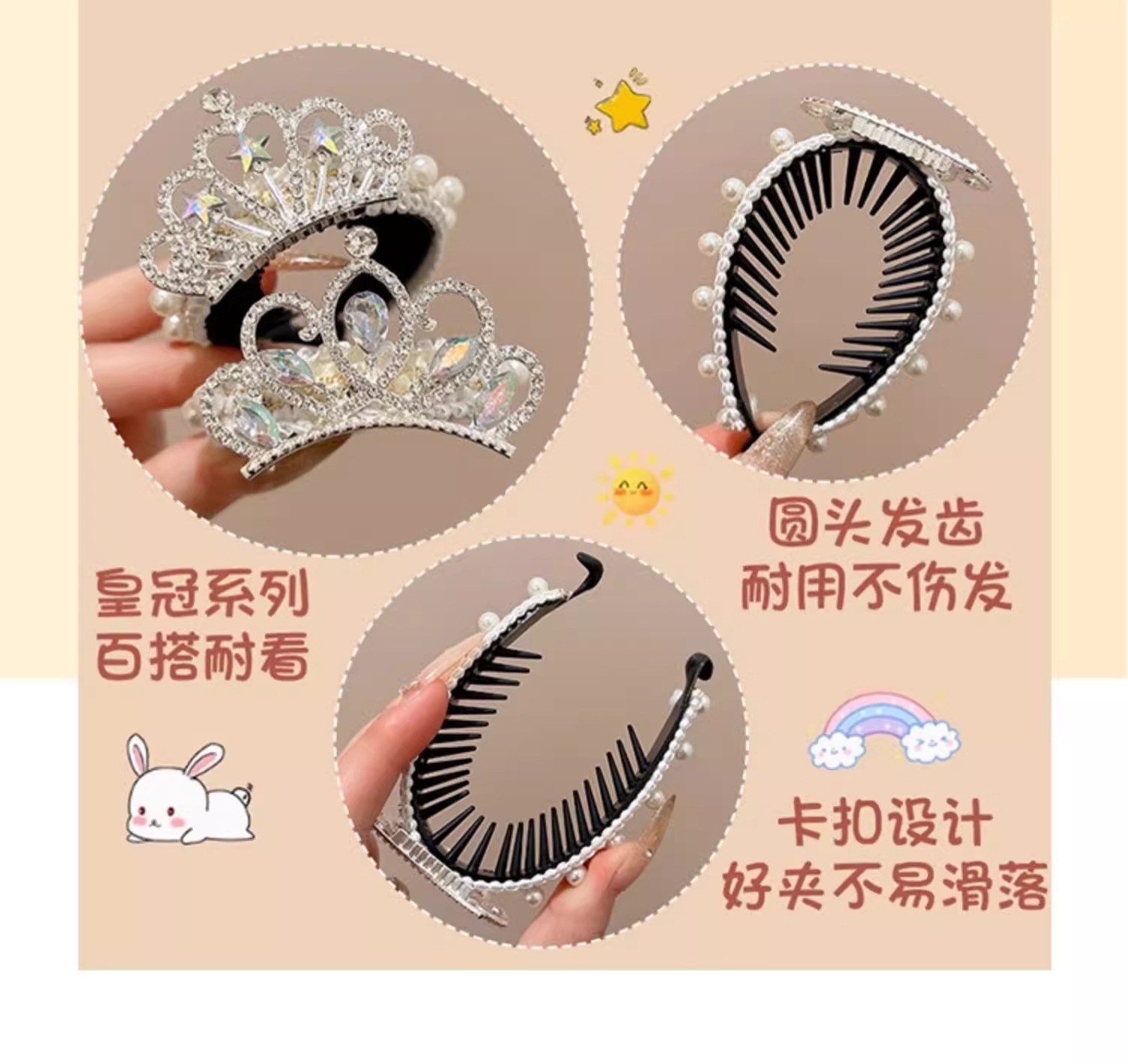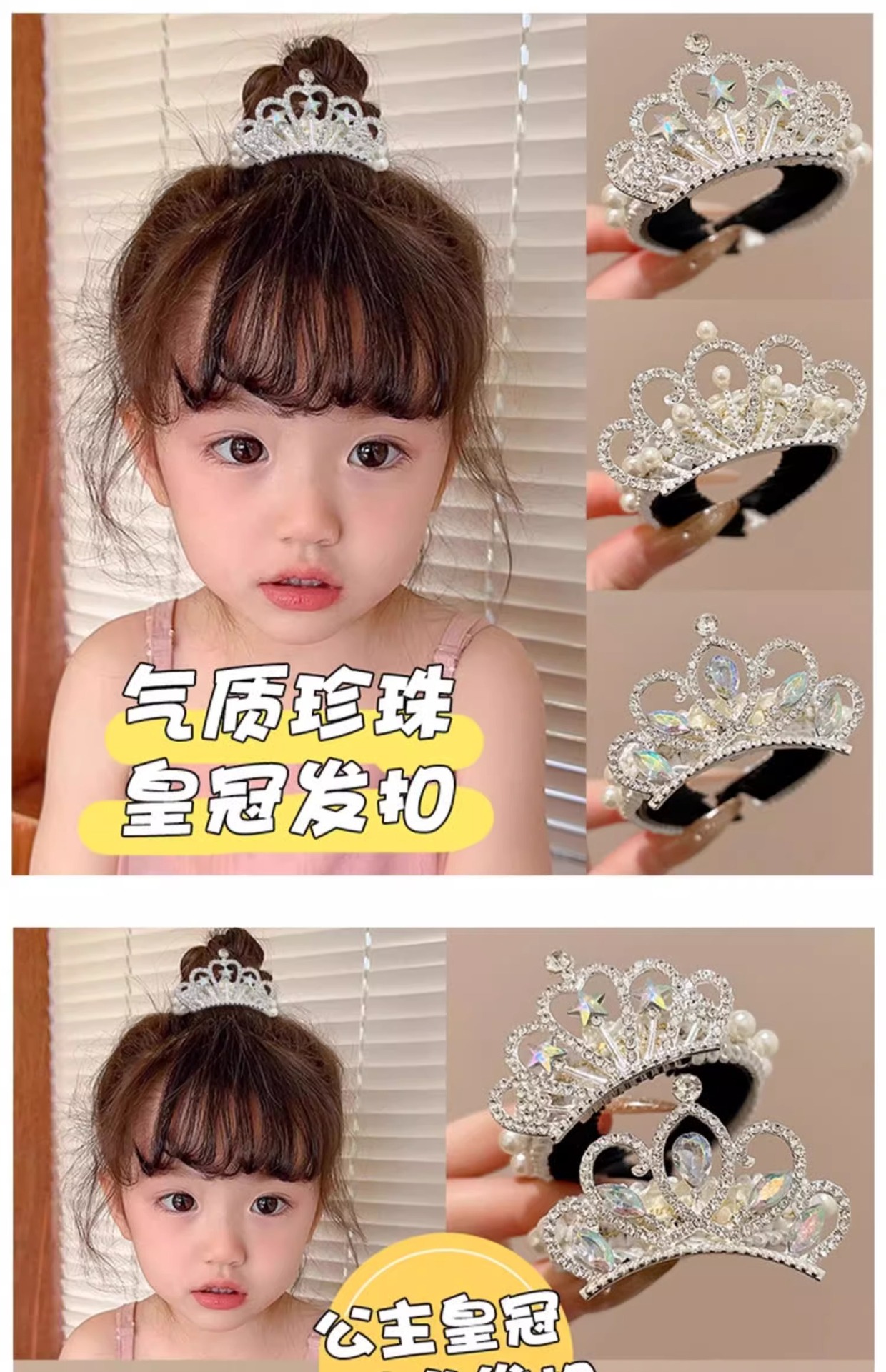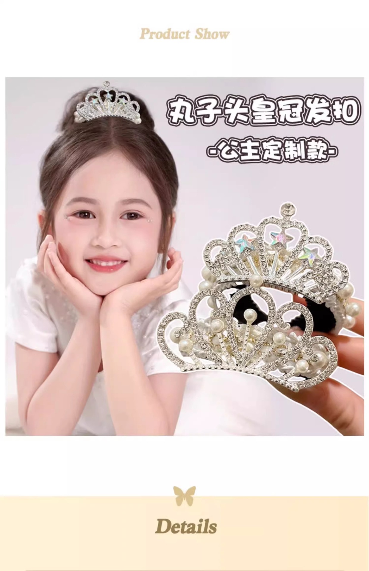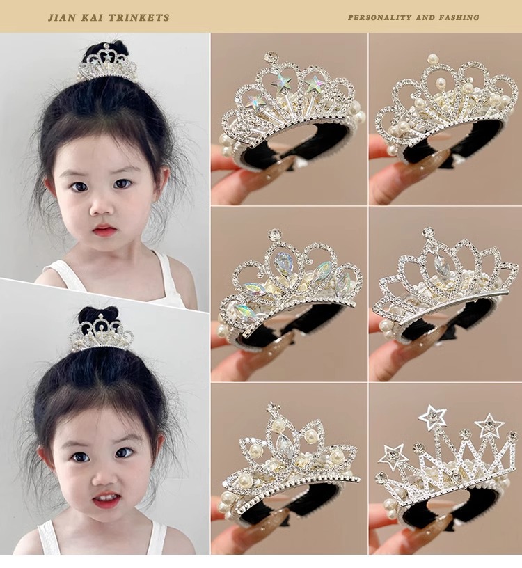 Niña princesa corona broca de pelo bola cabeza artefacto para niños broca de pelo perla broca de caballo broca de pelo toque