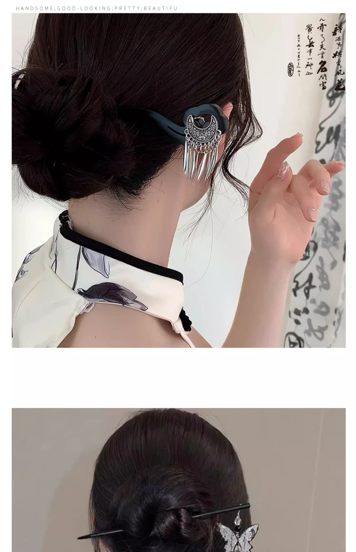 Nuevo estilo antiguo chino imitación de madera de sádalo pinzas de cabello para mujeres 2025 nueva cabeza trasera con bordas de cabello de alta calidad pinzas de cabello
