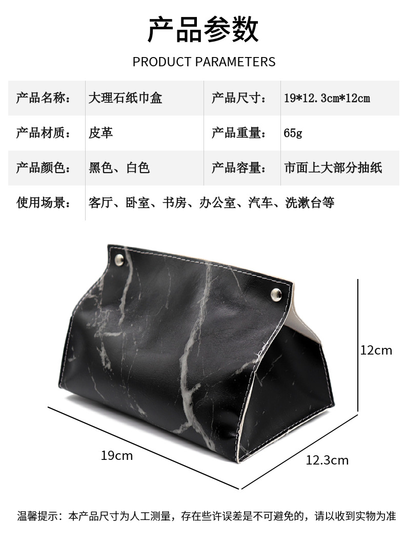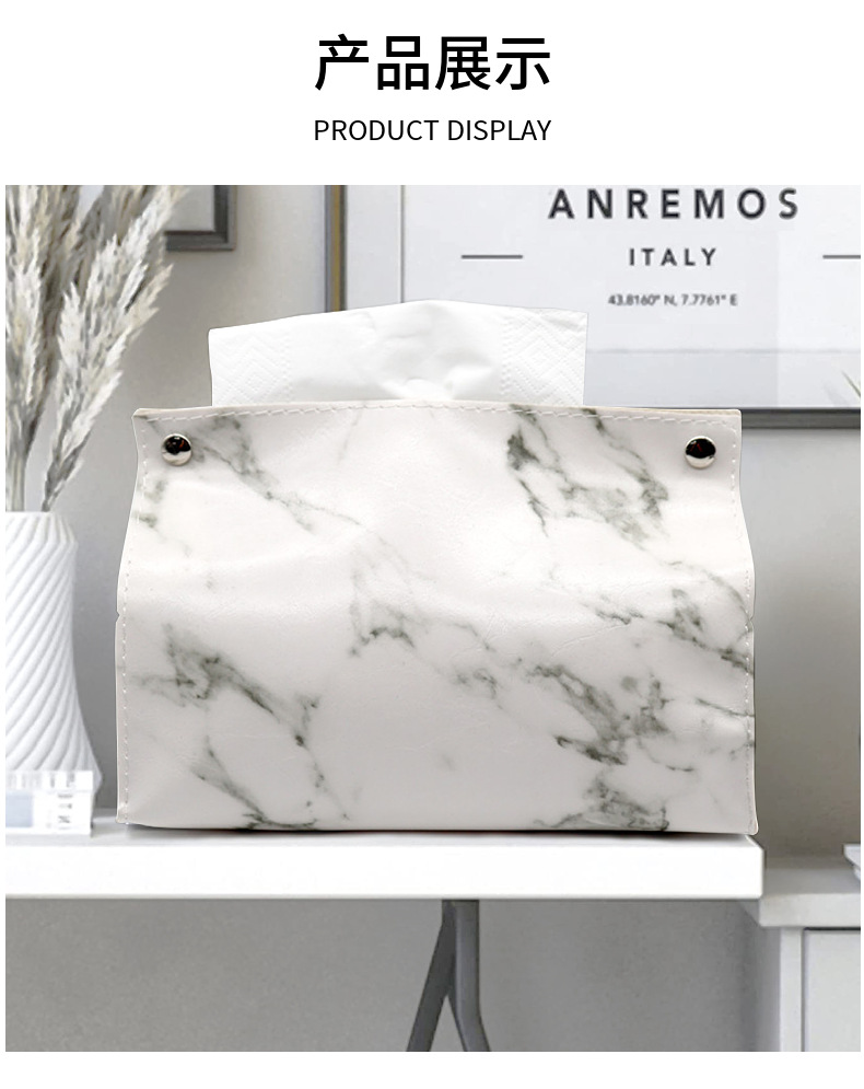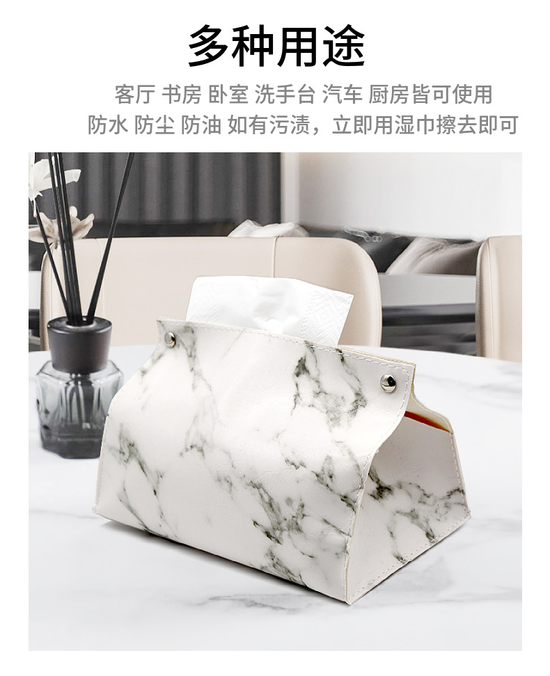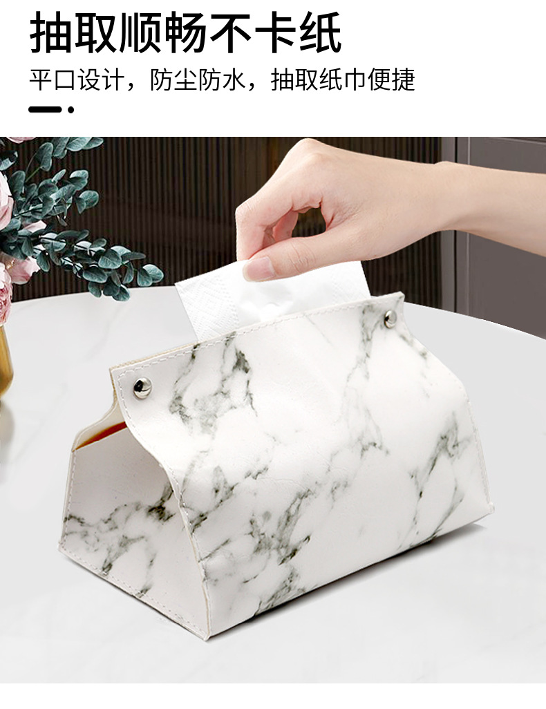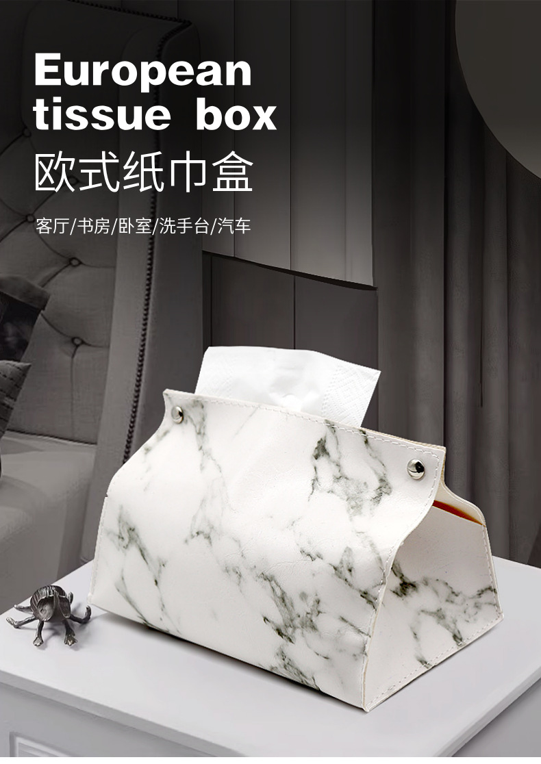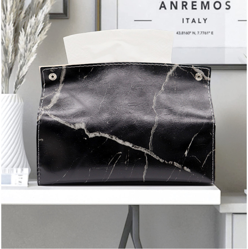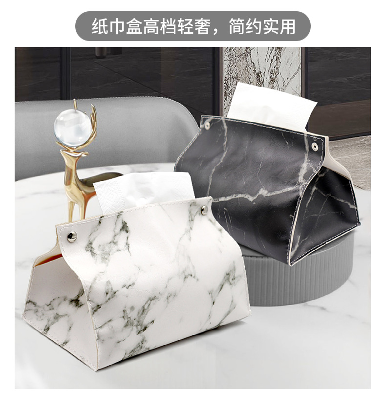 Caja de pañuelos de cuero de mármol de lujo ligero sala de estar hogar Baño servilleta caja de pañuelos coche PU caja de pañuelos