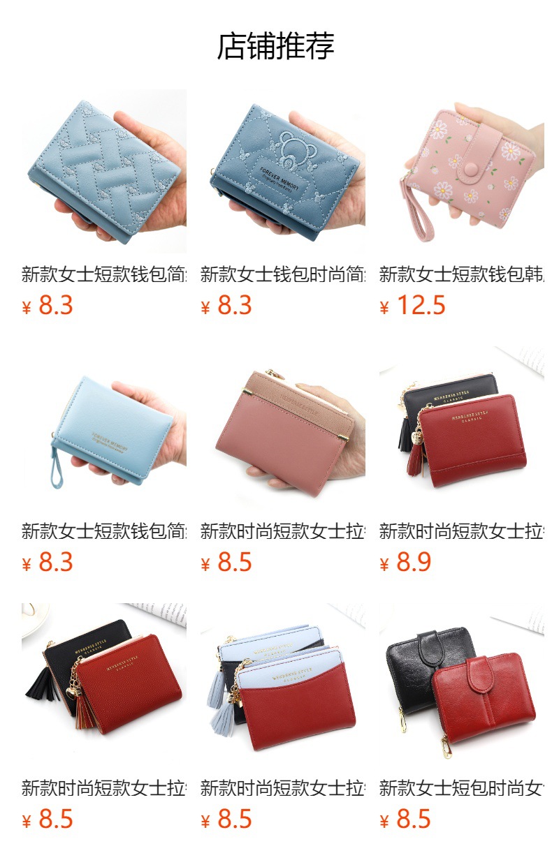 Nueva cartera para niñas monedero con cremallera para estudiante billetera corta para mujer monedero tríptico titular de la tarjeta multi-tarjeta