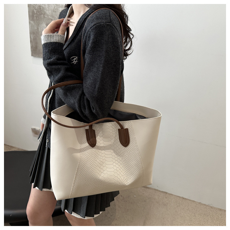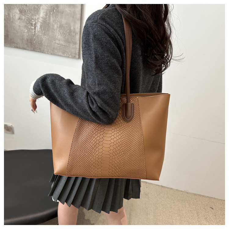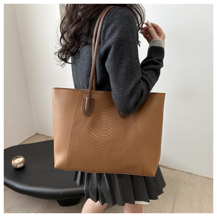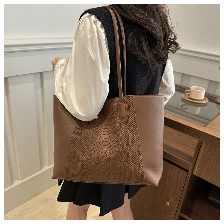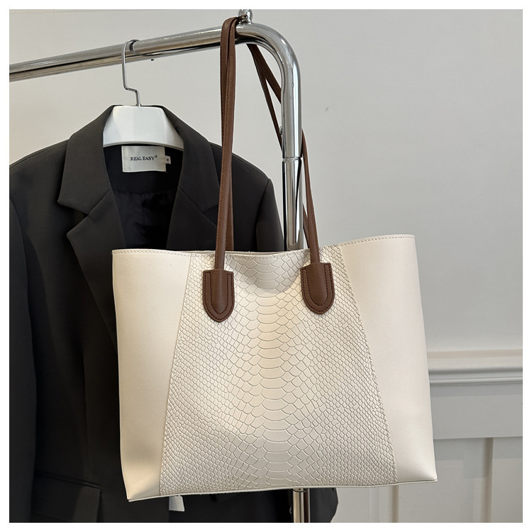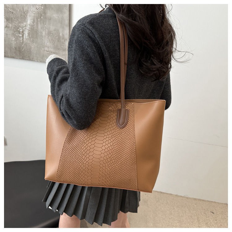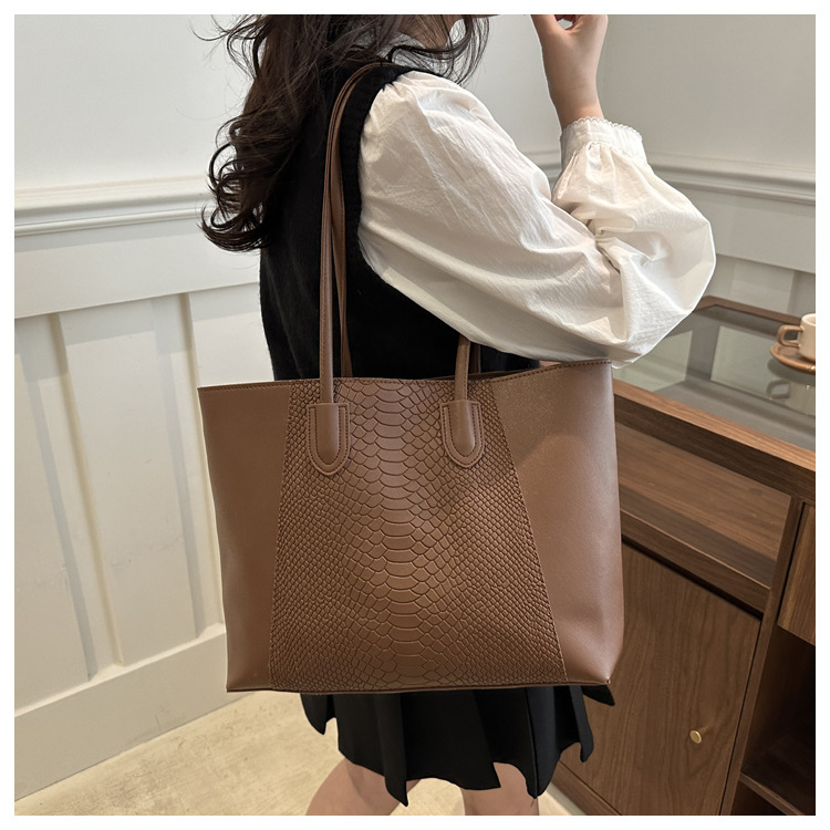 Bolso de viaje de temperamento simple para mujer 2025 Bolso de axilas de un solo hombro de gran capacidad de primavera Bolso de tote con estampado de cocodrilo