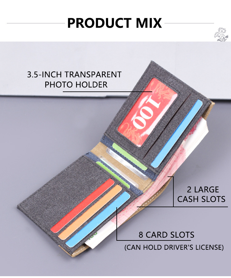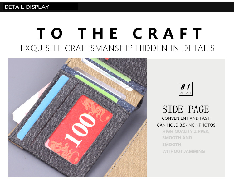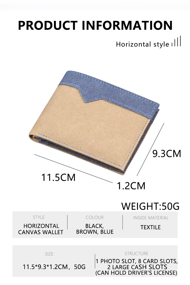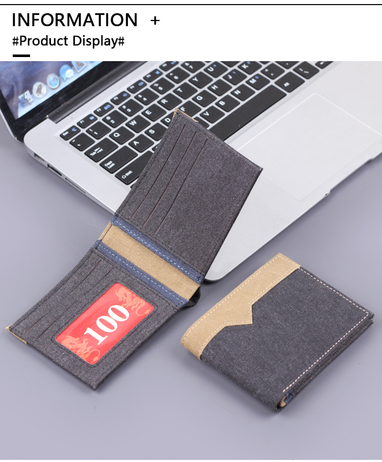Cartera para hombre Lona para hombre Wallet Man Cartera para hombre Cartera para hombre Bolso en dólares para hombre Cartera de mezclilla para hombre