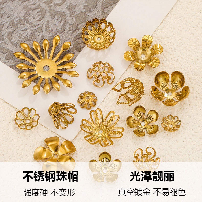 Petal de acero inoxidable sombrero de perlas 18K vacío chapado DIY collar pulsera joyería para hacer junta sombrero de perlas