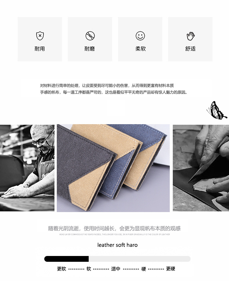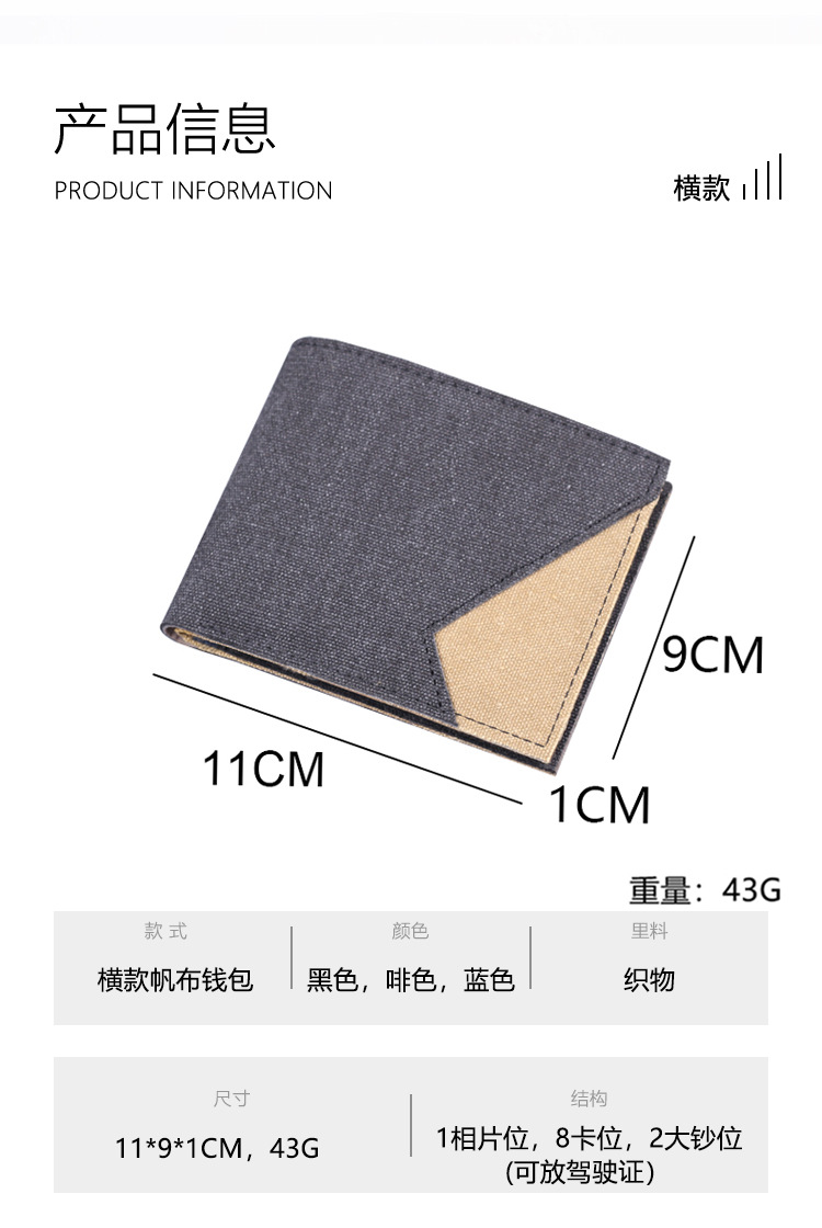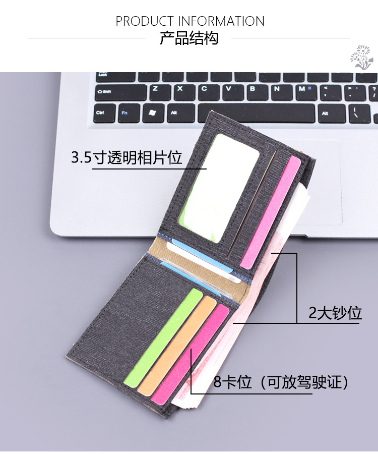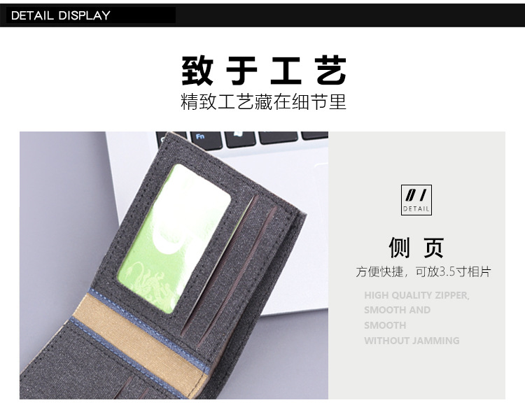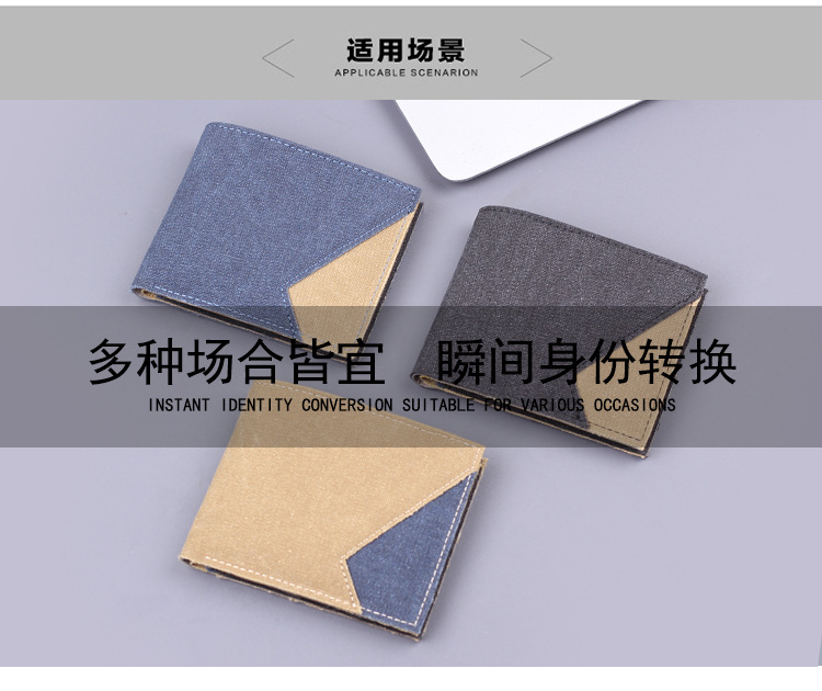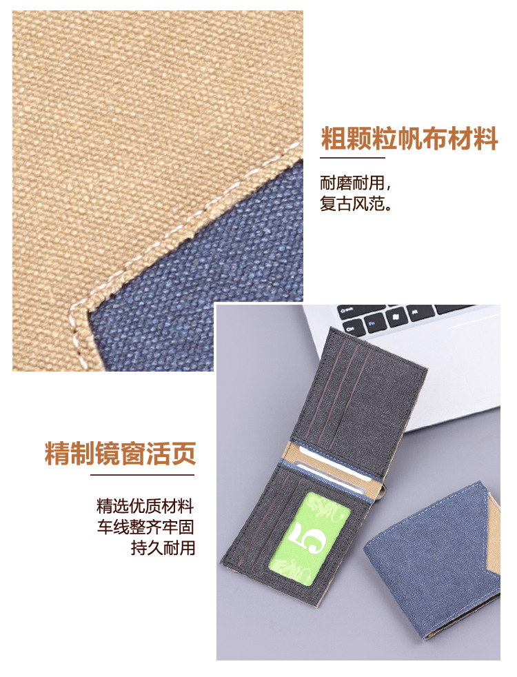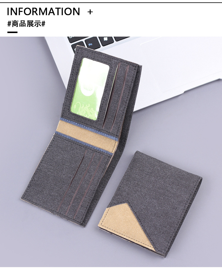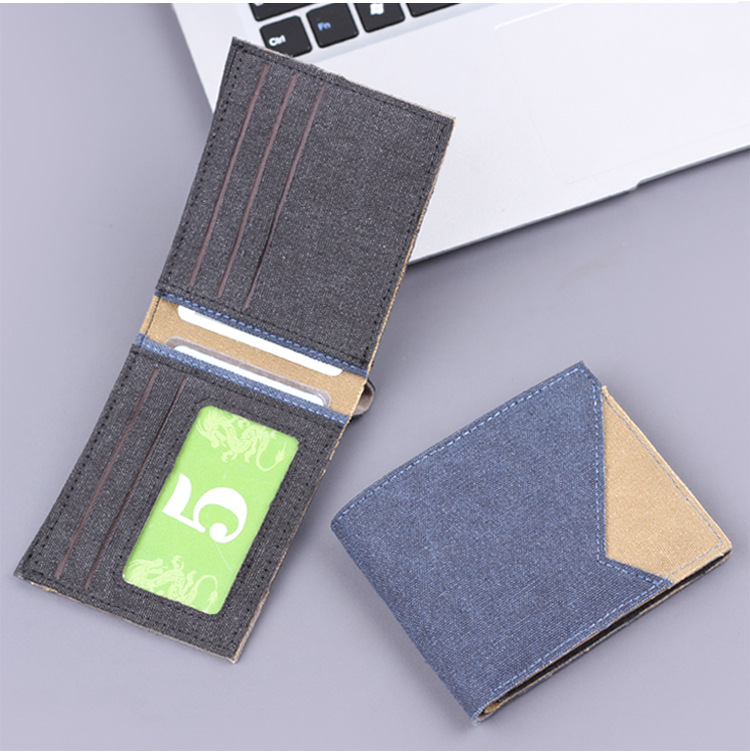 Cartera corta de mezclilla para hombre Cartera de lona para hombre Cartera para hombre Cartera para hombre con 9 posiciones para tarjeta para hombre con doble descuento