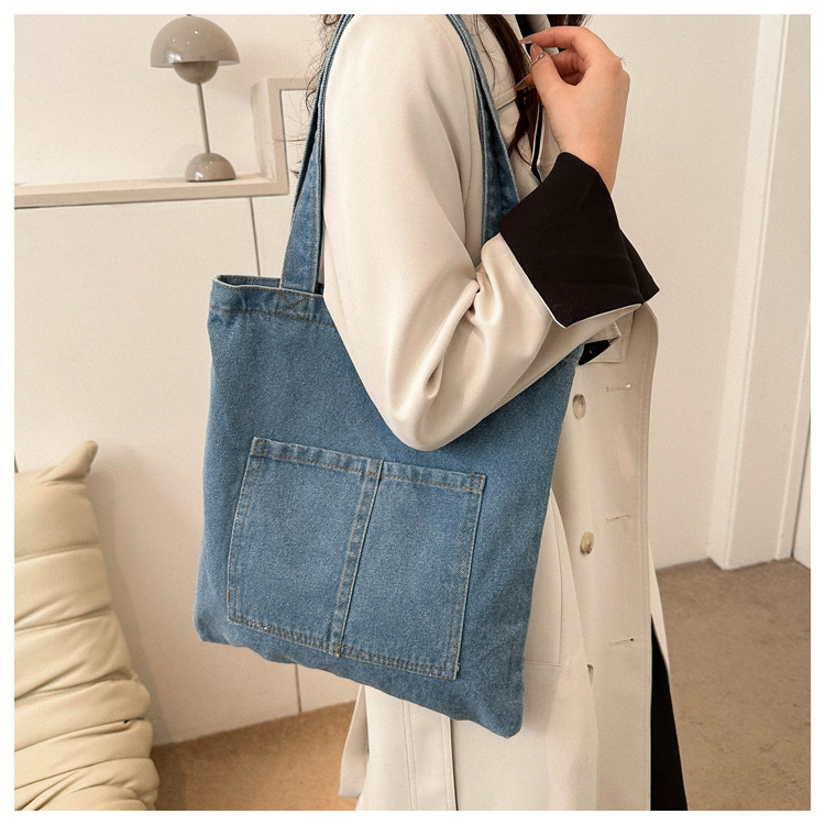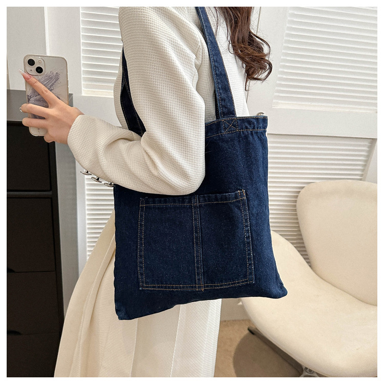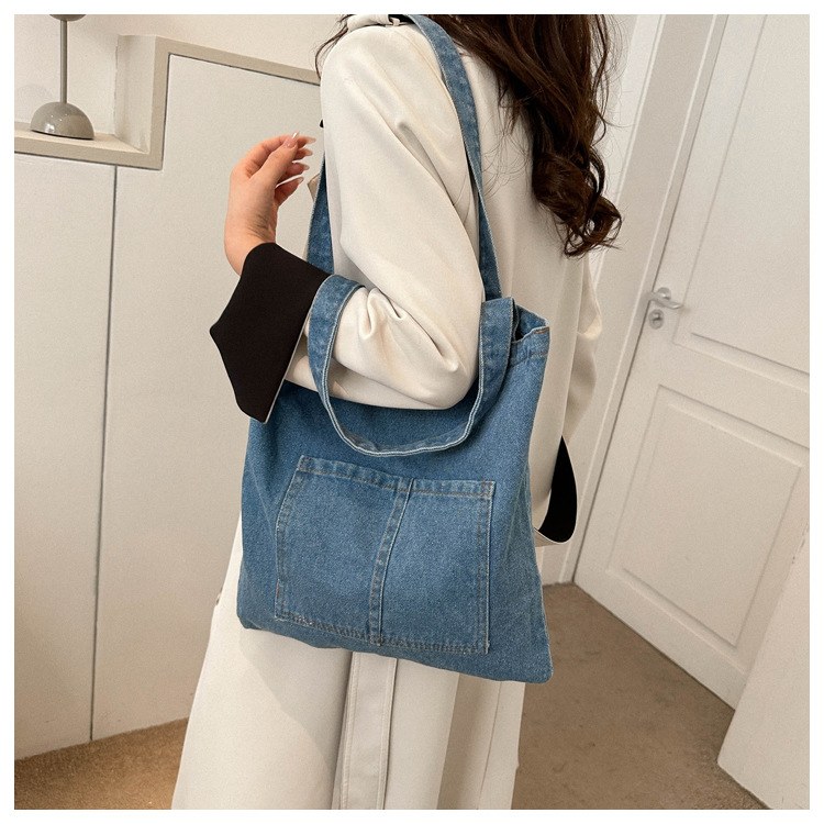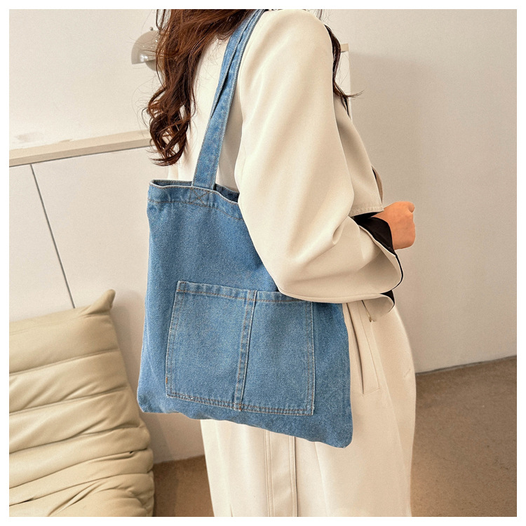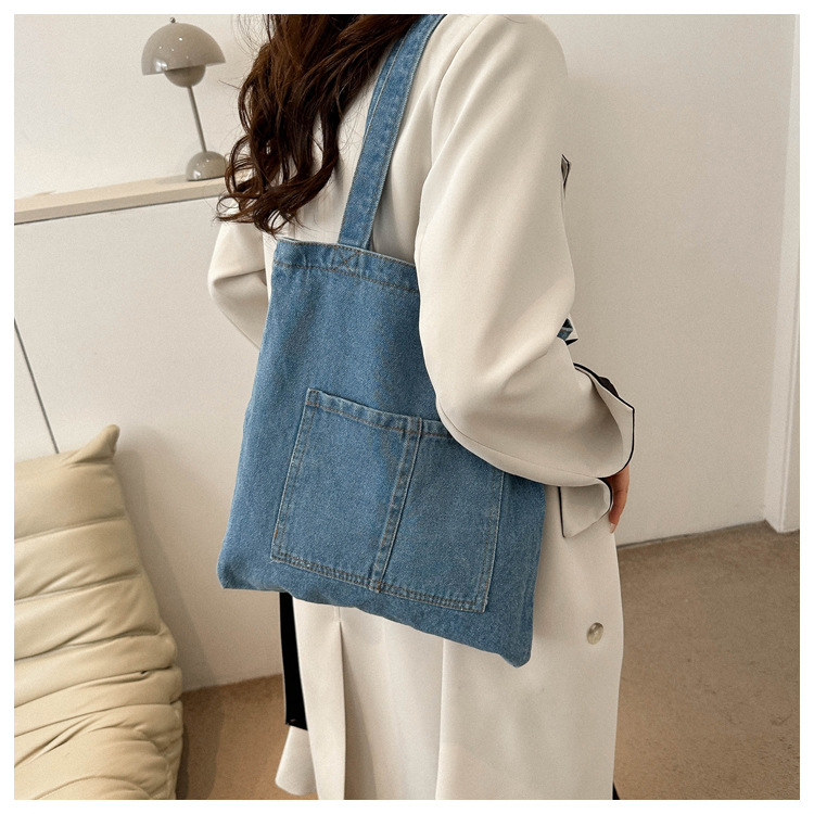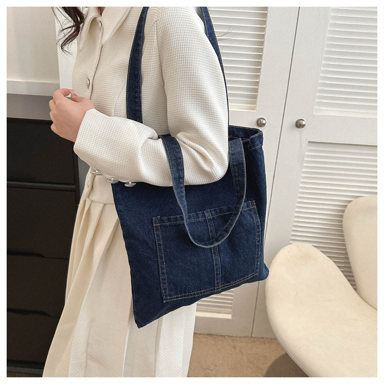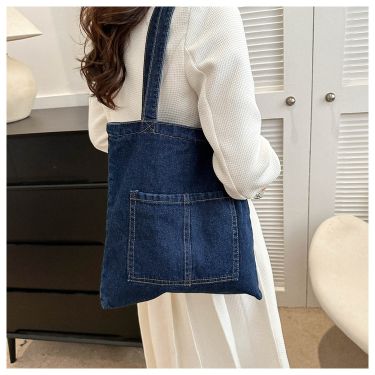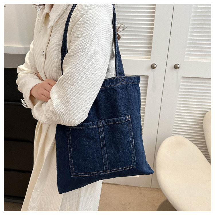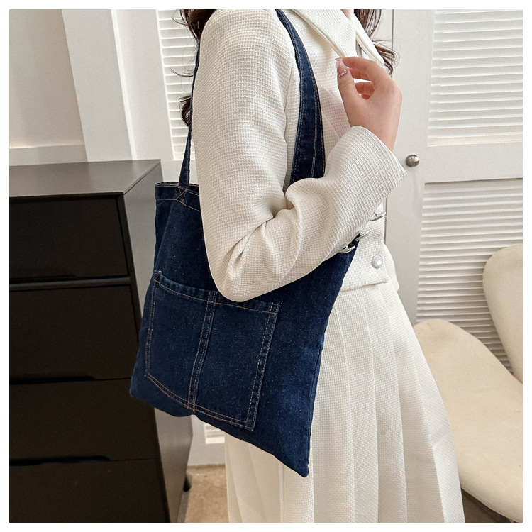 Simple moda Denim alta textura bolso de las mujeres 2023 Invierno nuevo estilo occidental color sólido de gran capacidad hombro bolsa de las axilas