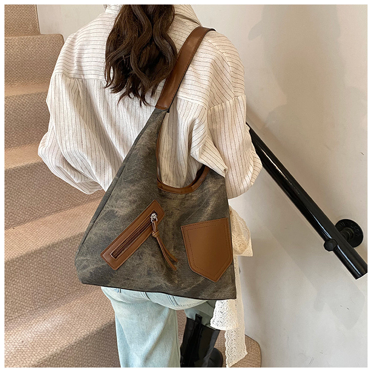Bolsa de viaje multi-bolsillo 2025, primavera, nuevo retro versátil bolso de hombro de clase, bolsa de gran capacidad para mujeres