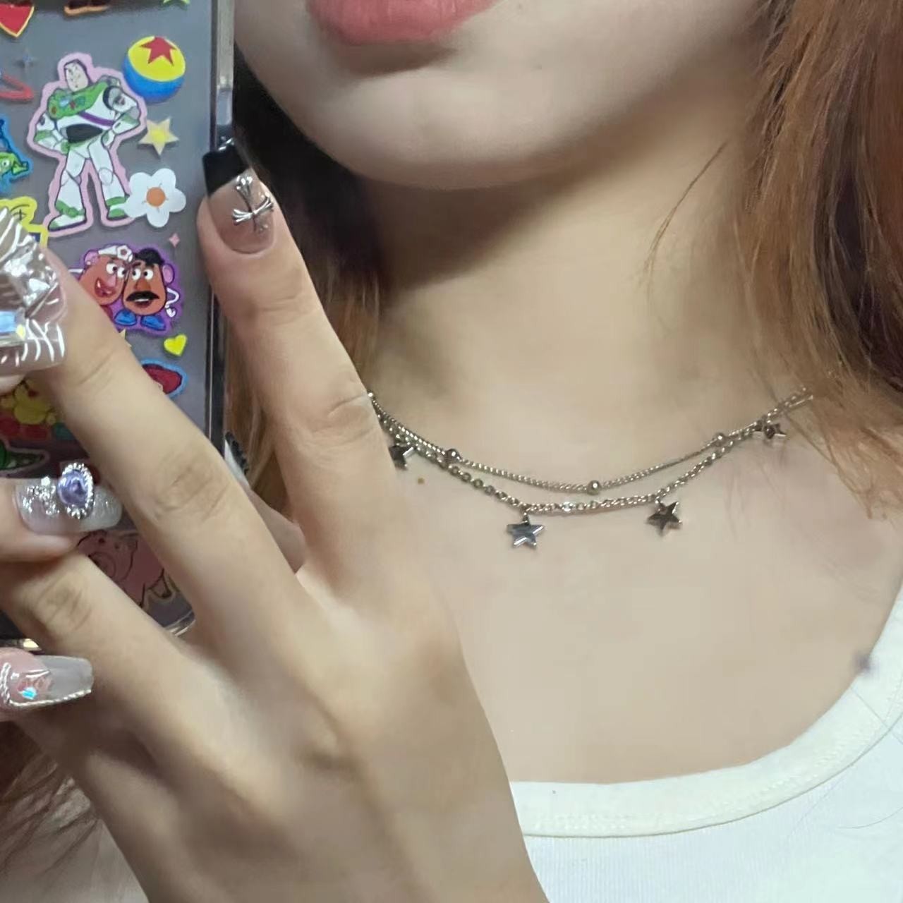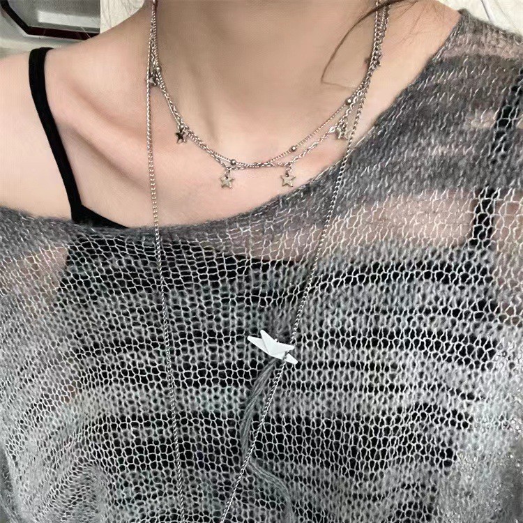 Diseño coreano de nicho seis estrellas cuentas collar collar