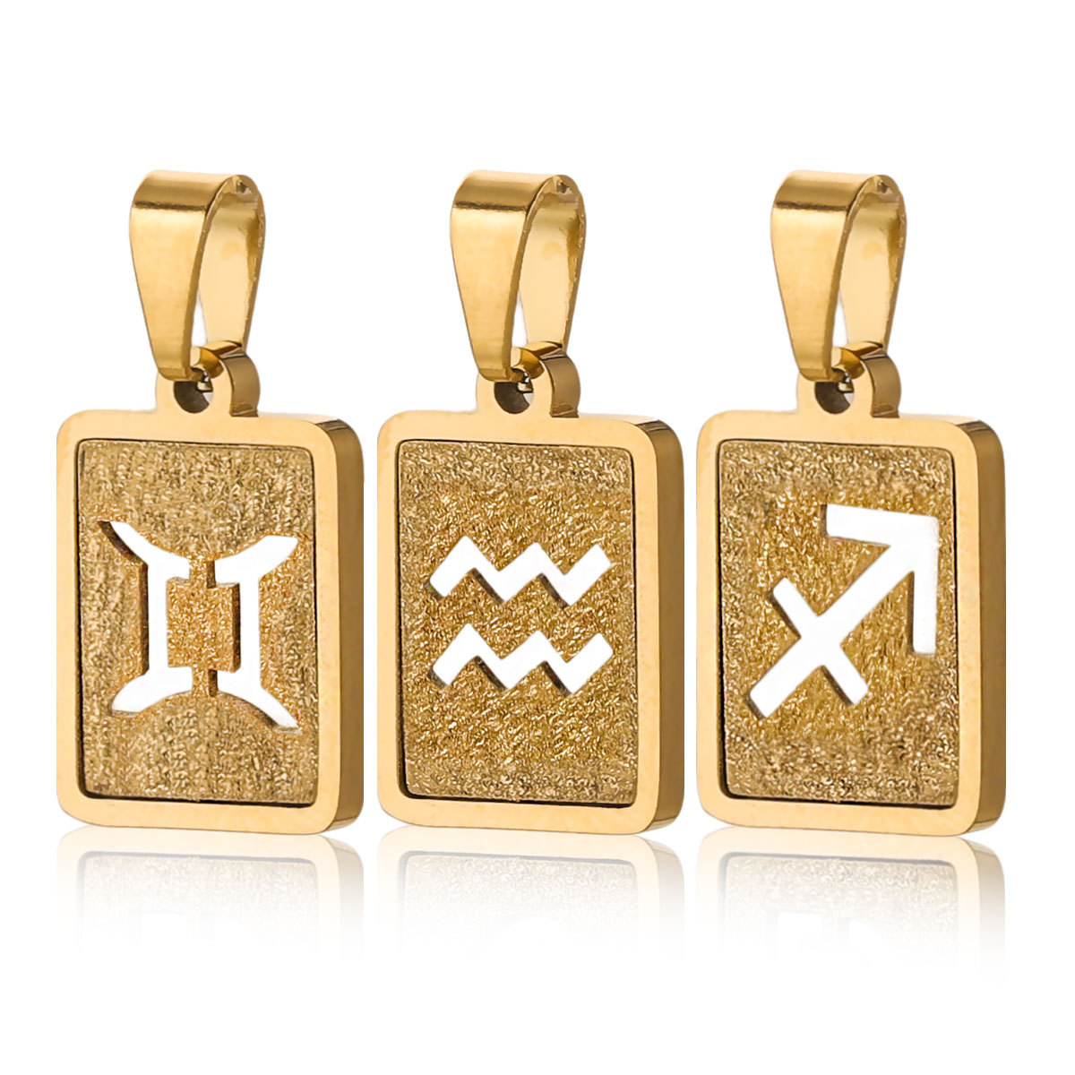 Rectangular europeo y americano prensado arena 18K acero inoxidable doce colgante de constelación diseño de personalidad popular DIY joyería colgante