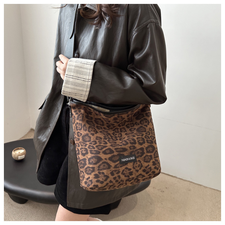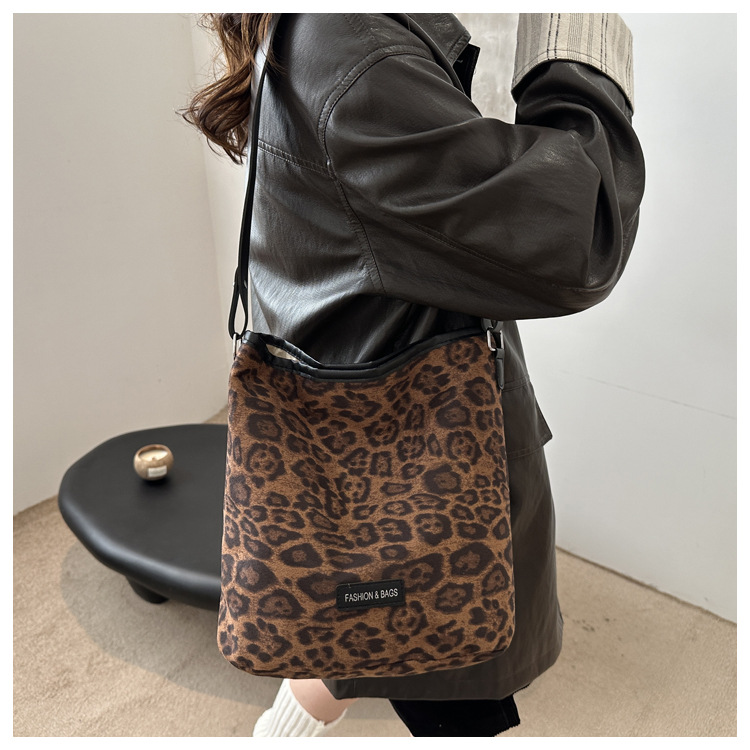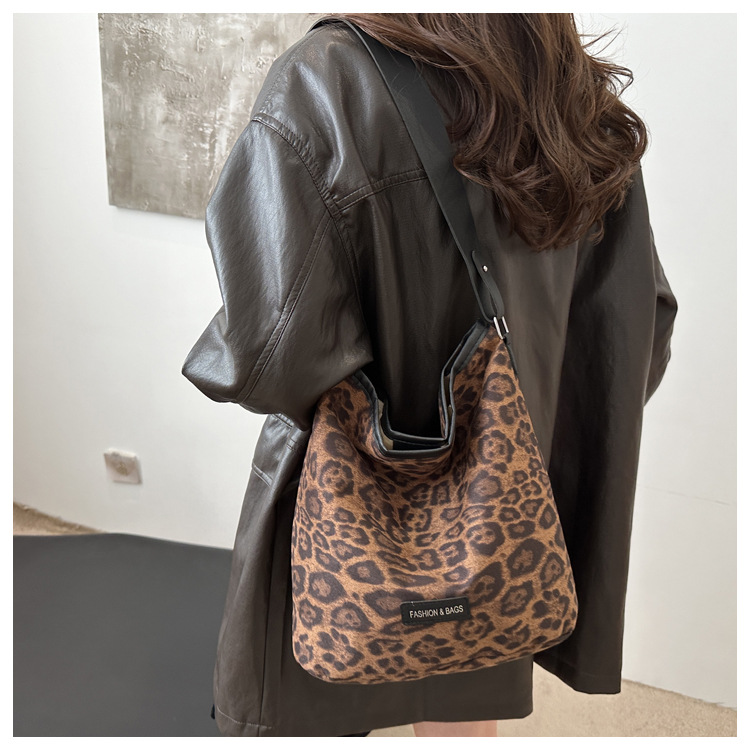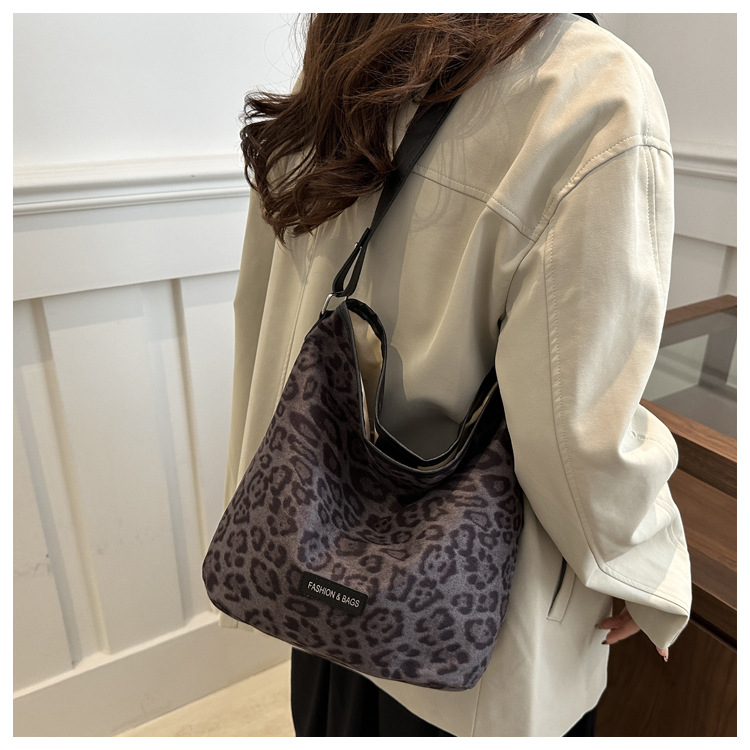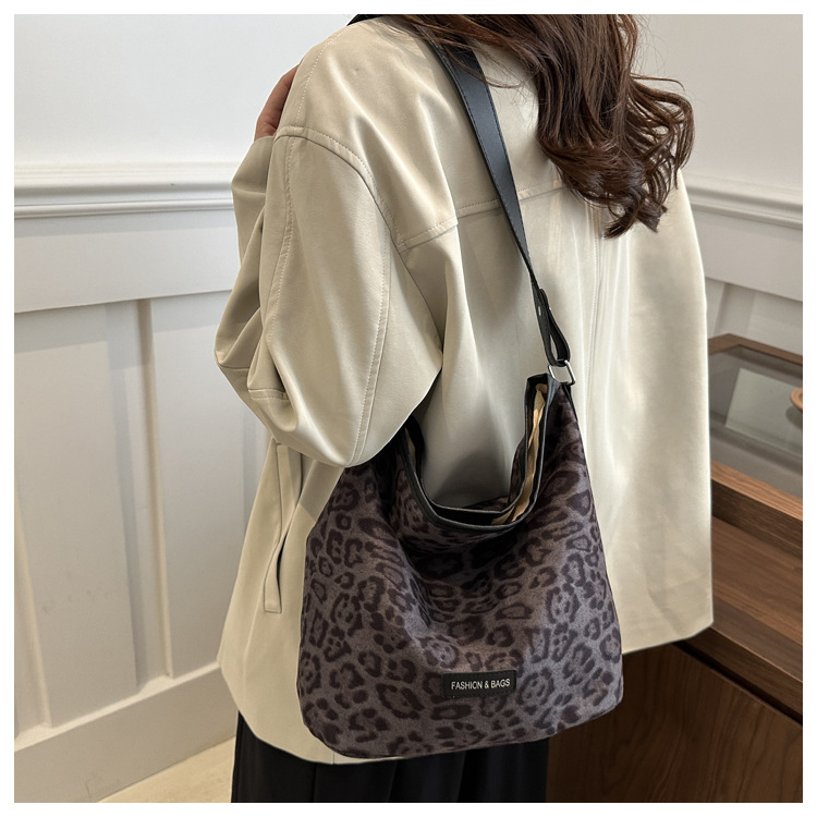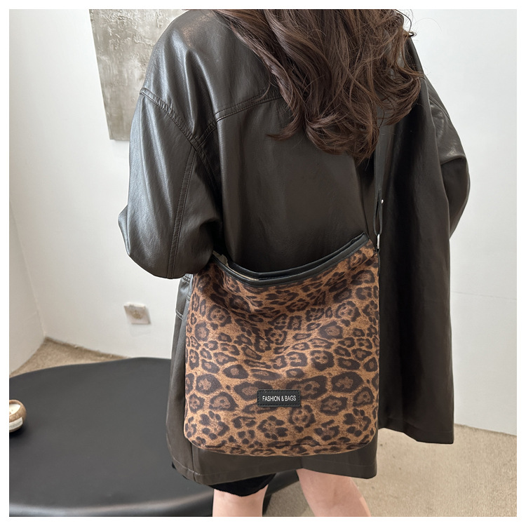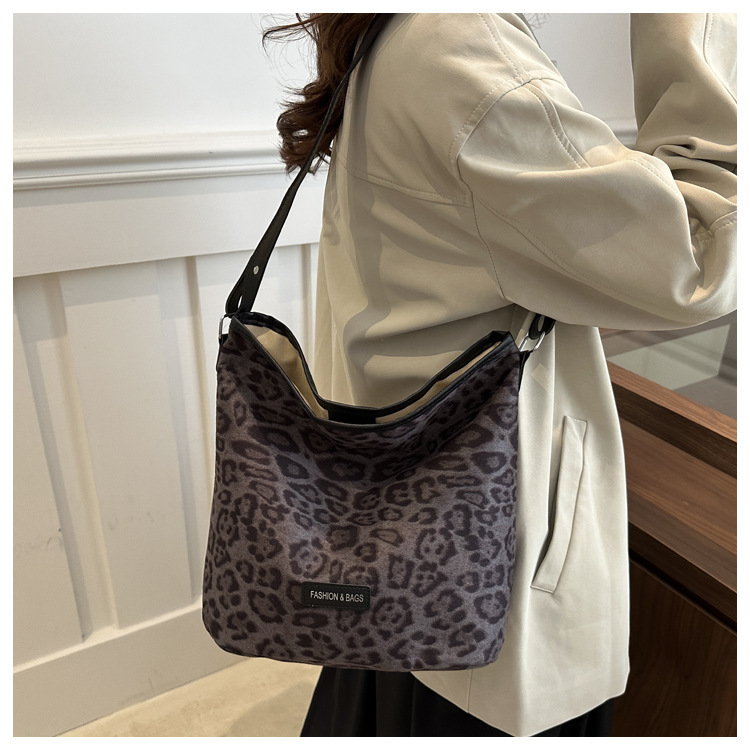 Bolsa de estilo retro para mujeres 2024 nueva moda de invierno impresa de leopardo de gran capacidad para trabajar bolso de hombro