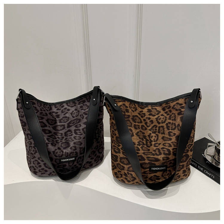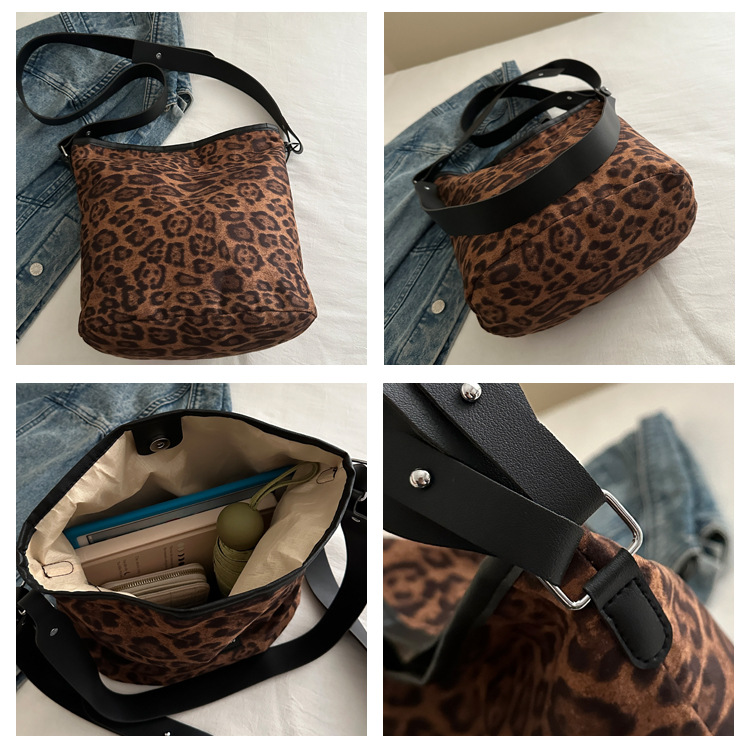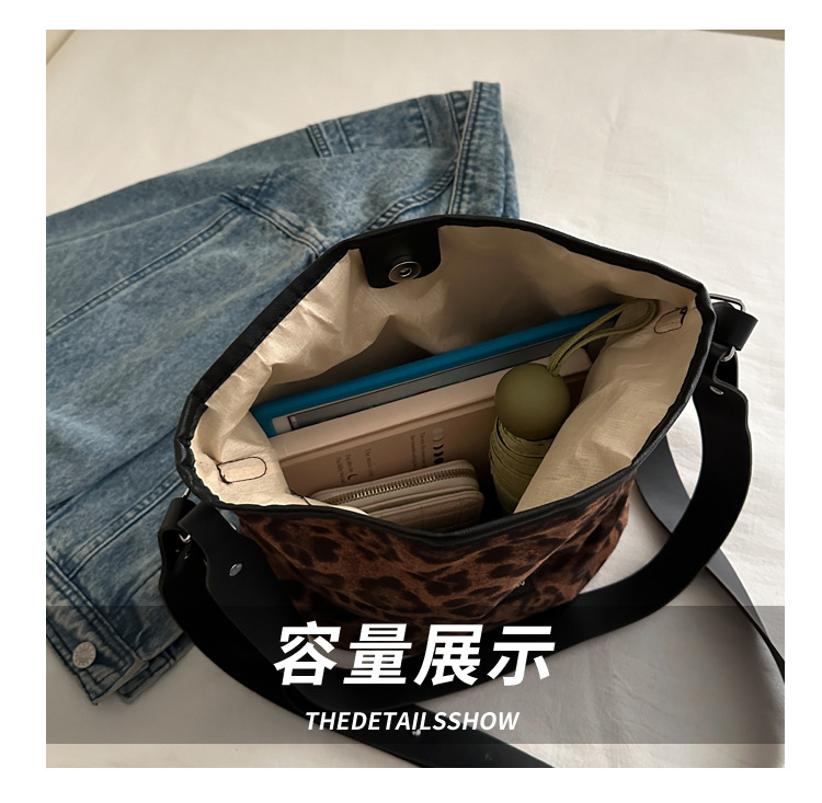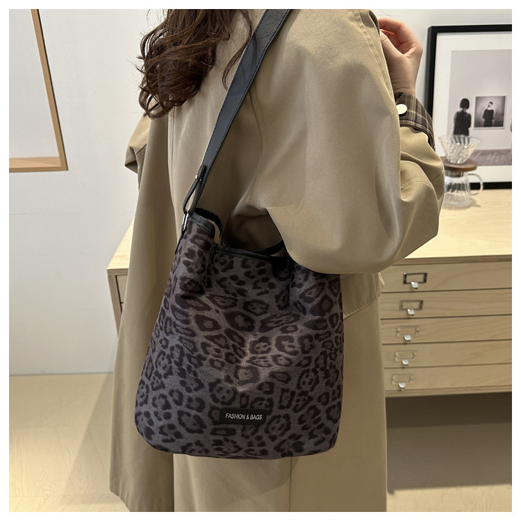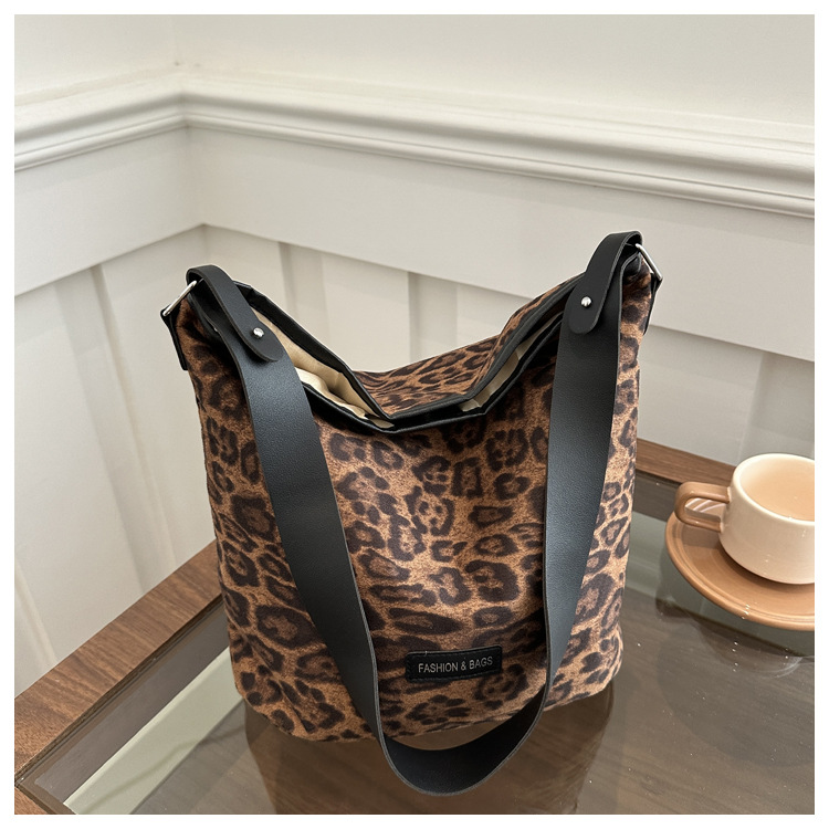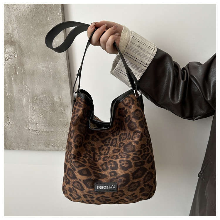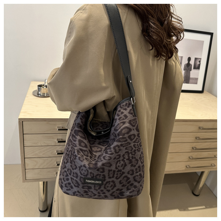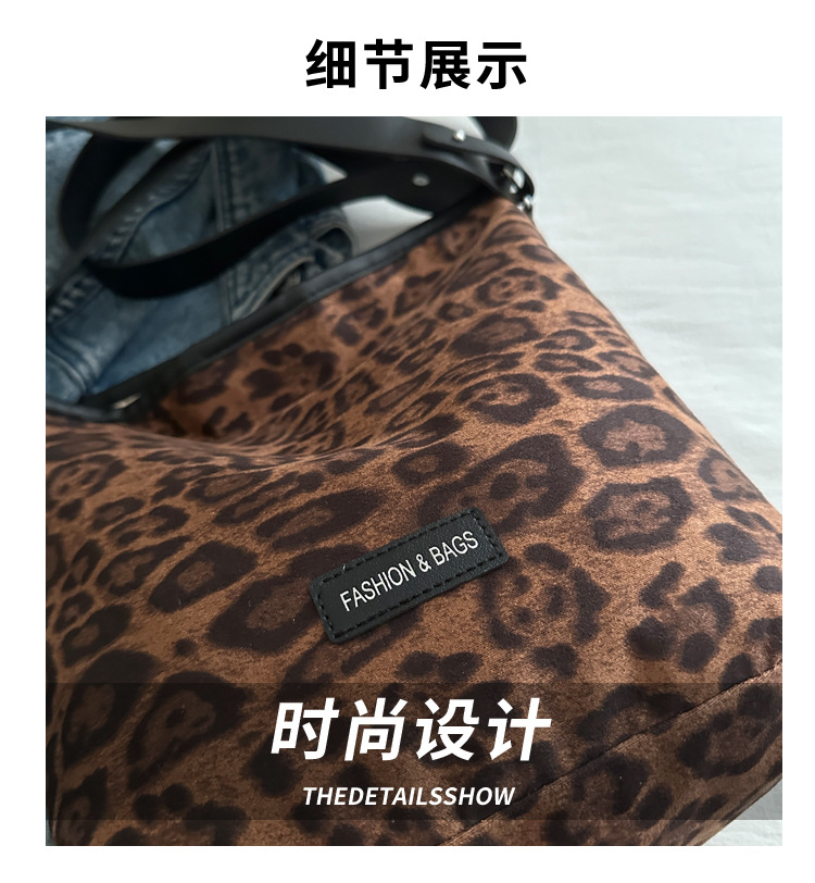 Bolsa de estilo retro para mujeres 2024 nueva moda de invierno impresa de leopardo de gran capacidad para trabajar bolso de hombro