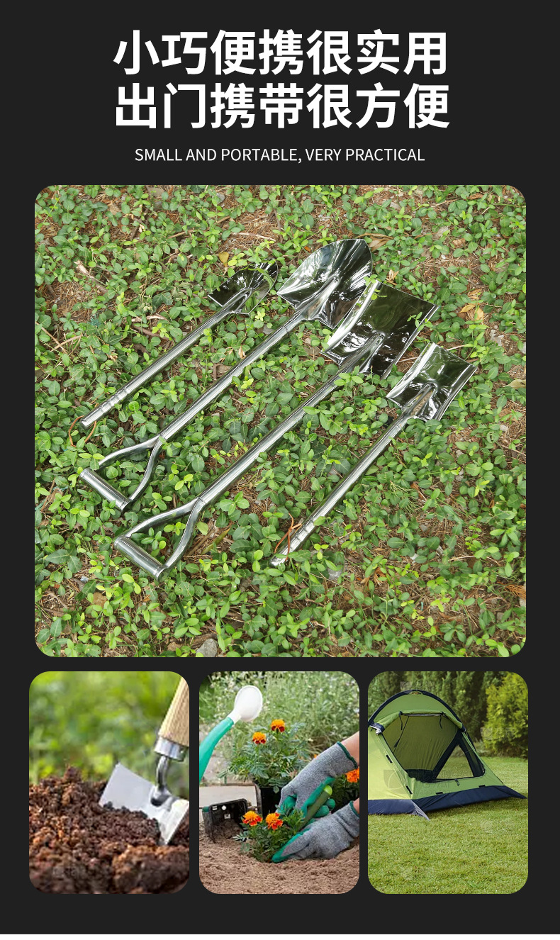 Al por mayor Ganhai Acero inoxidable integrado pala jardín pala cuadrada pala de nieve al aire libre Suelo Suelto plantación herramienta de hardware pala
