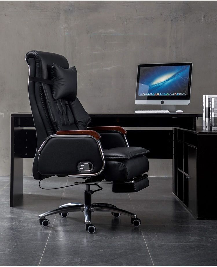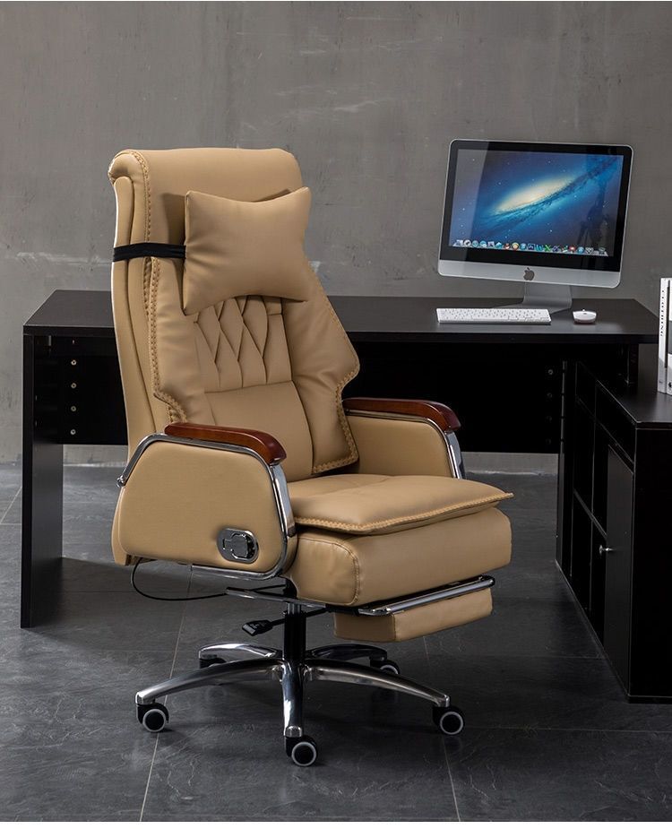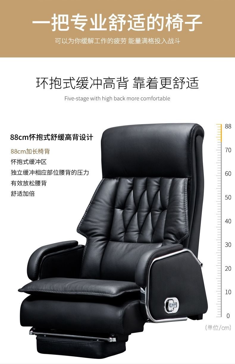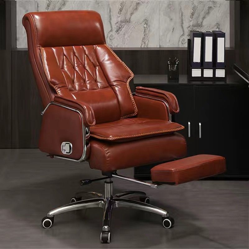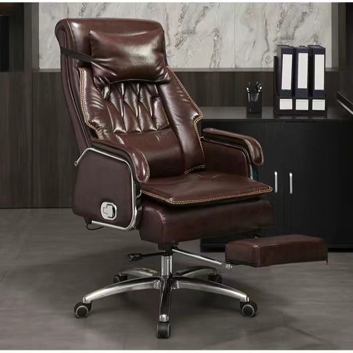 Silla de jefe de cuero genuino silla de oficina de masaje reclinable silla de oficina de negocios cómoda silla de escritorio de larga duración Silla de computadora en casa