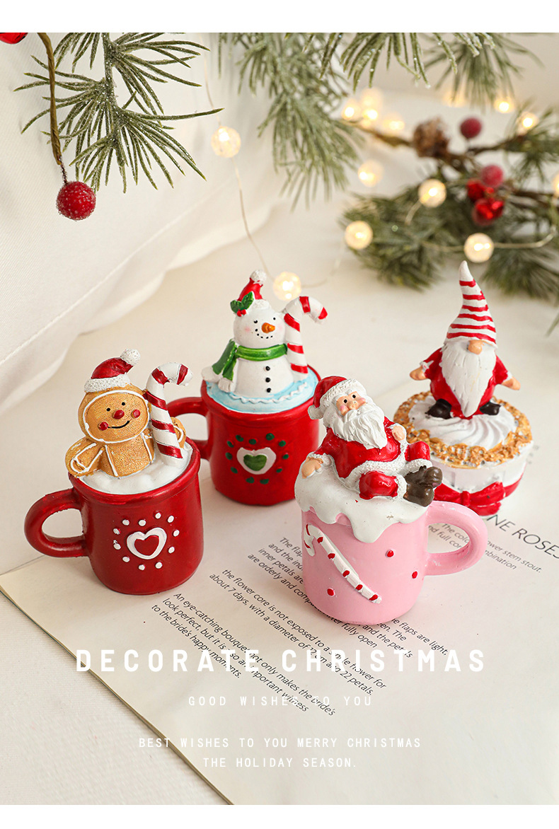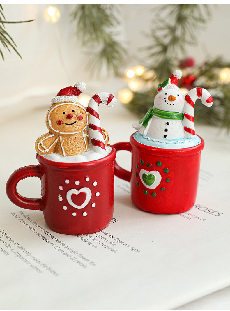 Taza de resina navideña Anciano Muñeco de nieve Hombre de jengibre Artesanía Decoraciones de escritorio Decoraciones navideñas Regalos creativos