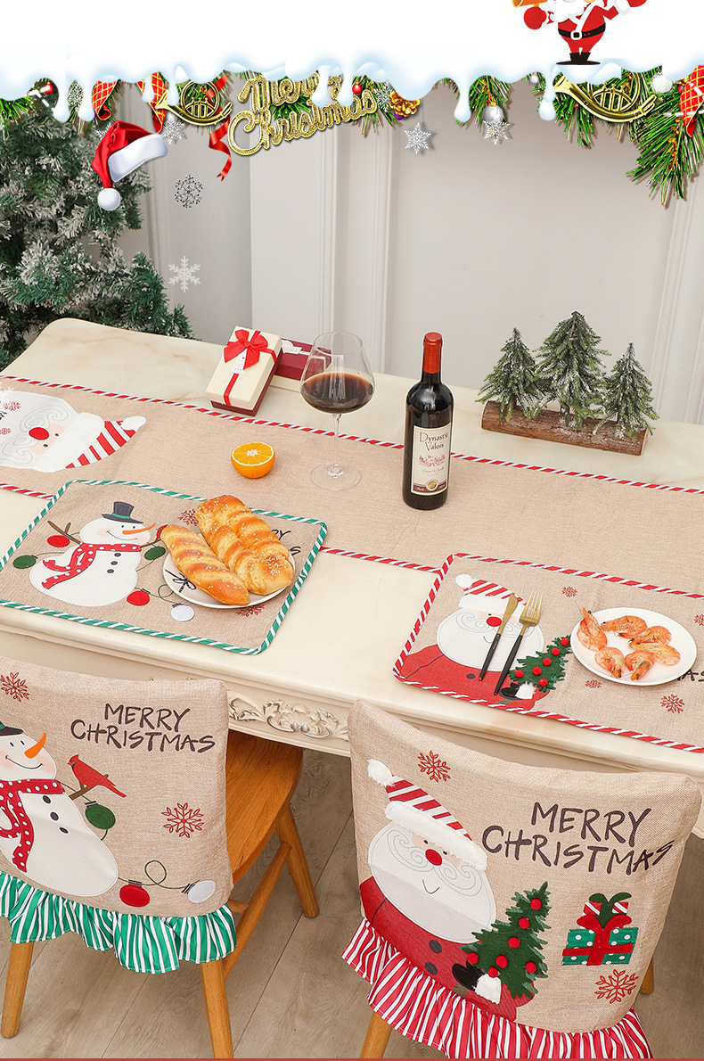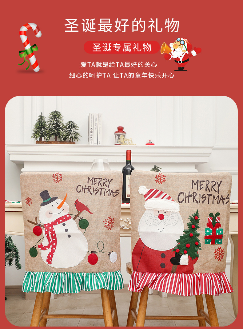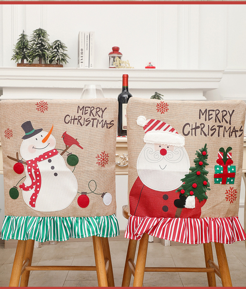 Nuevos productos transfronterizos decoraciones de Navidad lino viejo muñeco de nieve cubierta de silla de fichaje de Navidad creativa cubierta de taburete a rayas