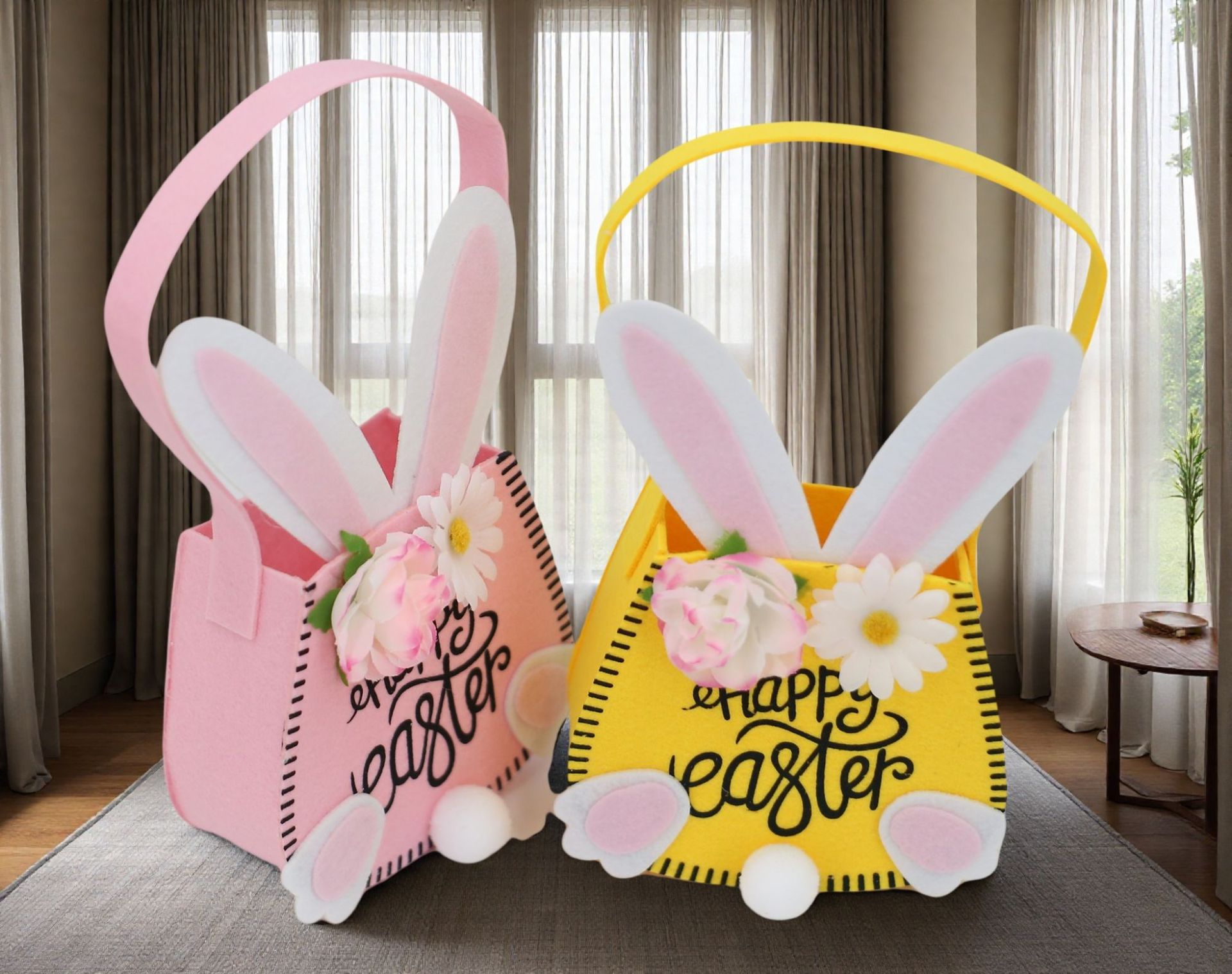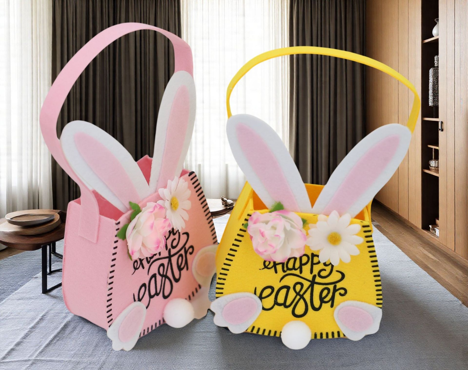 2025 nueva bolsa transfronteriza de pascua canasta canasta conejo decoración simple bolsa de almacenamiento fábrica al por mayor