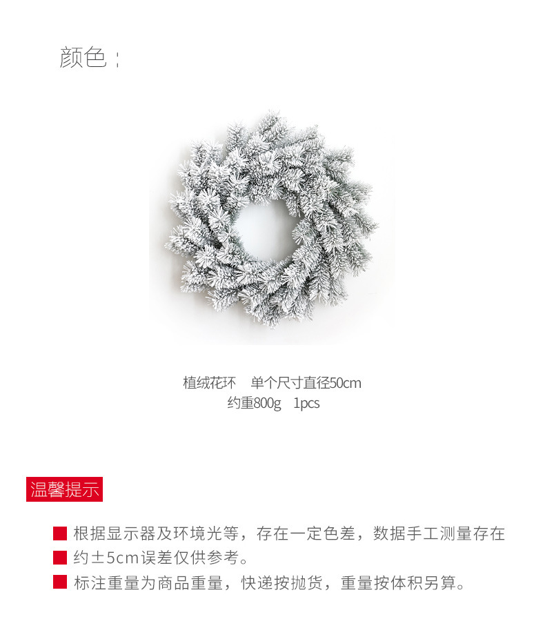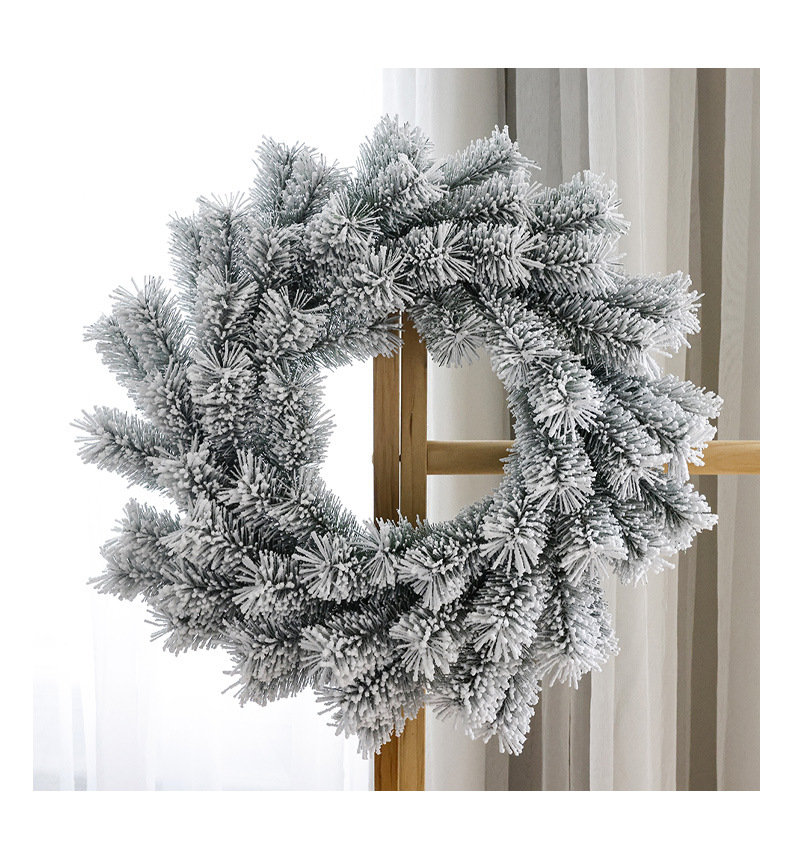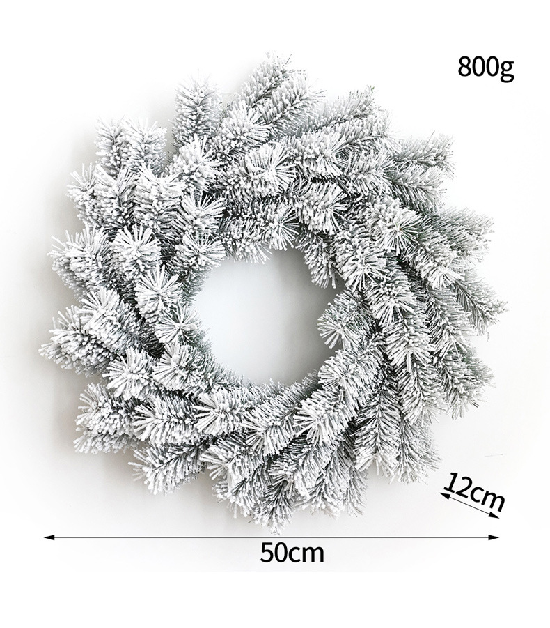 50CM flocado guirlanda decoración paisaje de nieve PVC / PE imitación puerta de árbol de Navidad colgar guirlanda decoración de árbol de Navidad