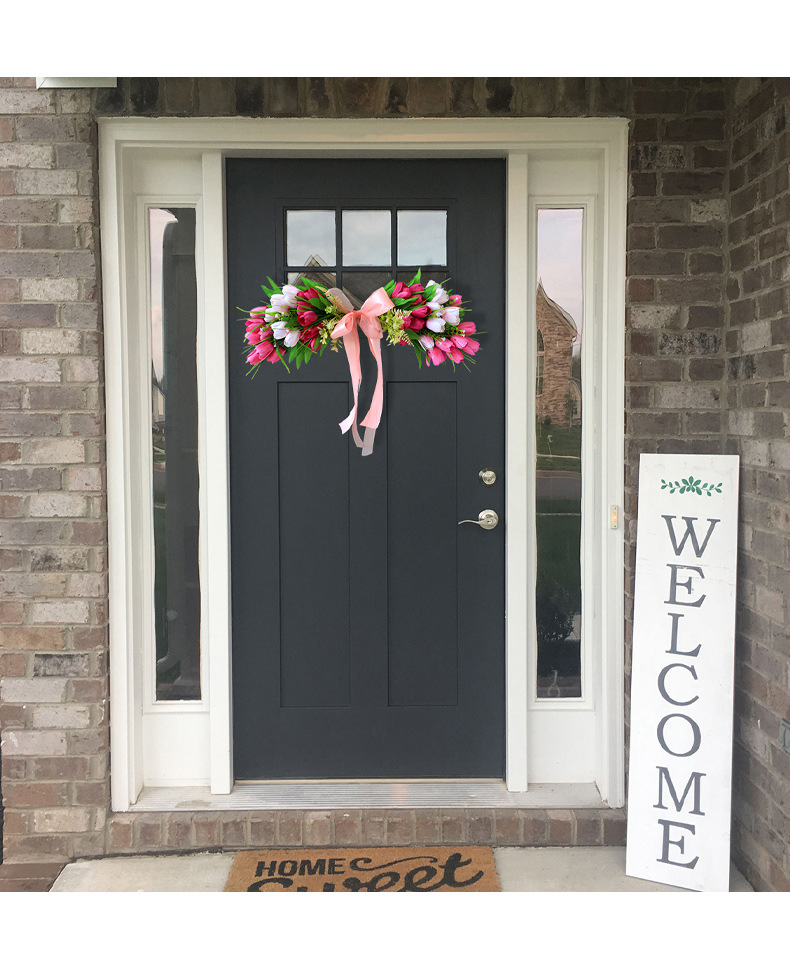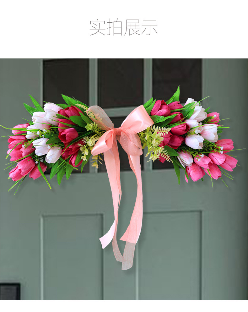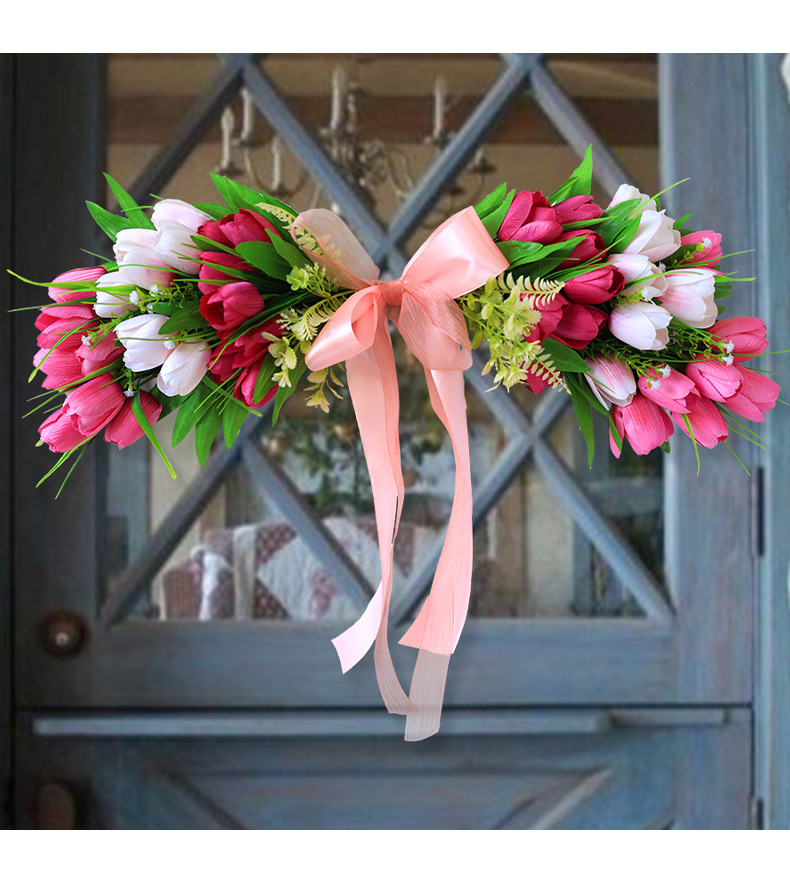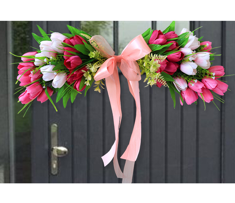 Tulipan transfronterizo puerta colgante flores de seda artificial flores verdes decoración de boda sensación colgante de pared