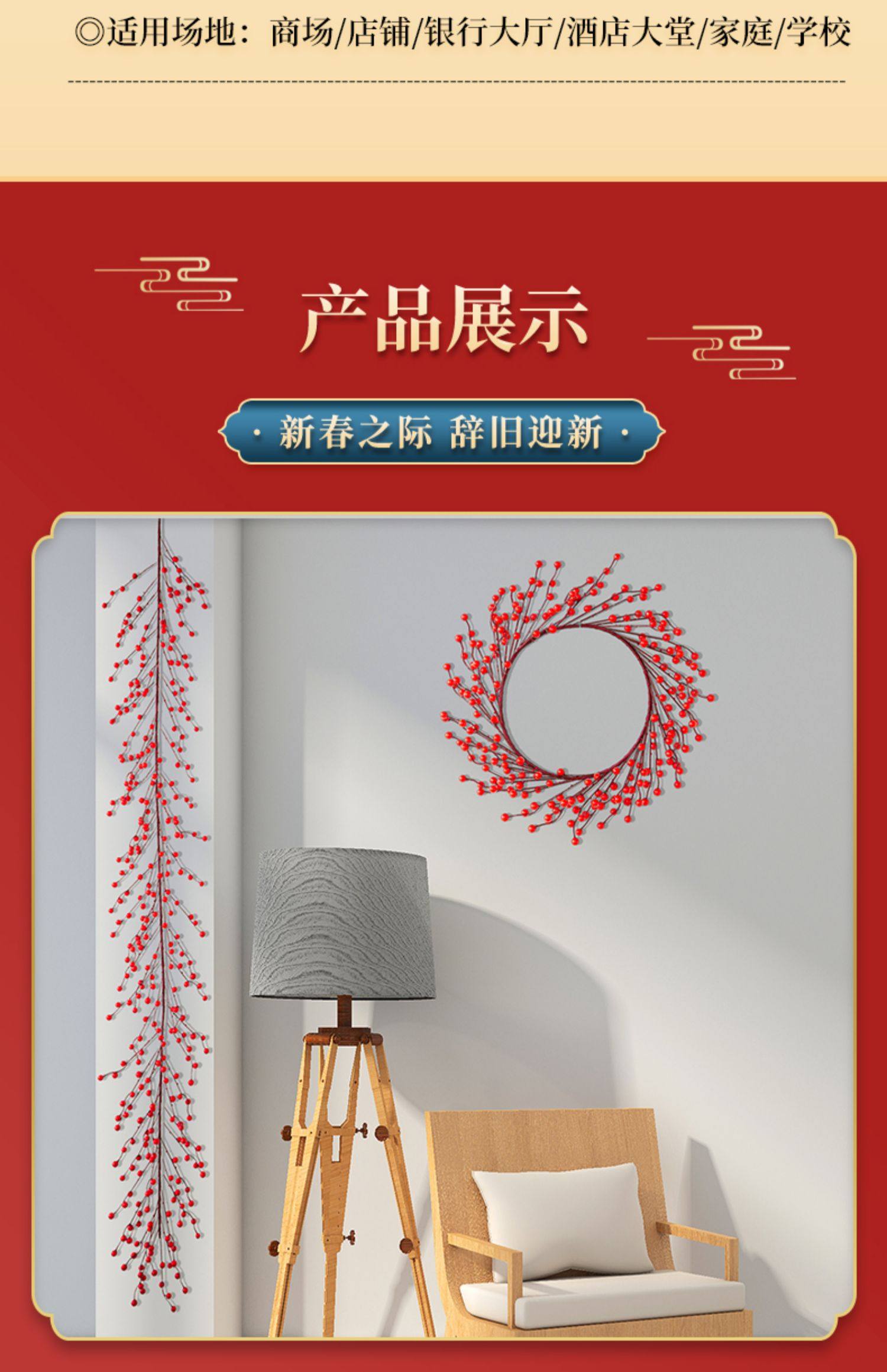 Decoraciones de Navidad baya roja Garland ratán anillo de ratán decoración de Año Nuevo puerta y ventana colgante diseño de vacaciones