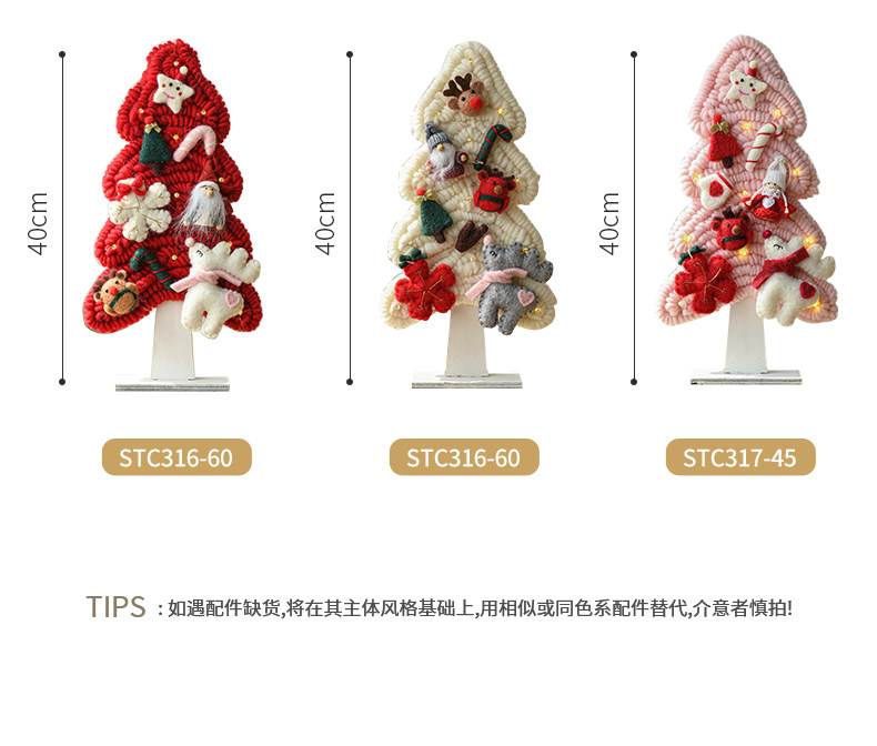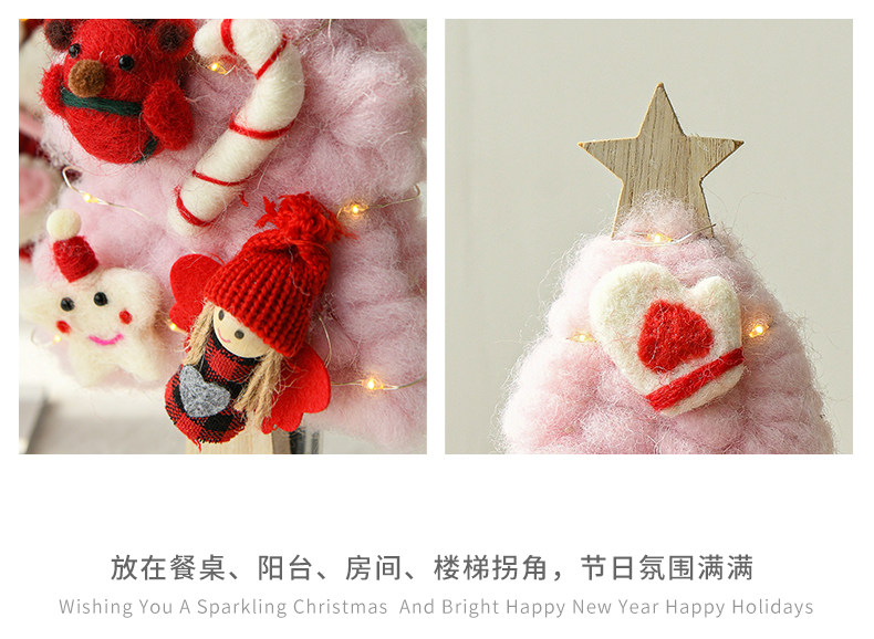 Fieltro de lana tejido a mano DIY luminoso árbol de Navidad alces Navidad decoración de la habitación de los niños adornos creativos