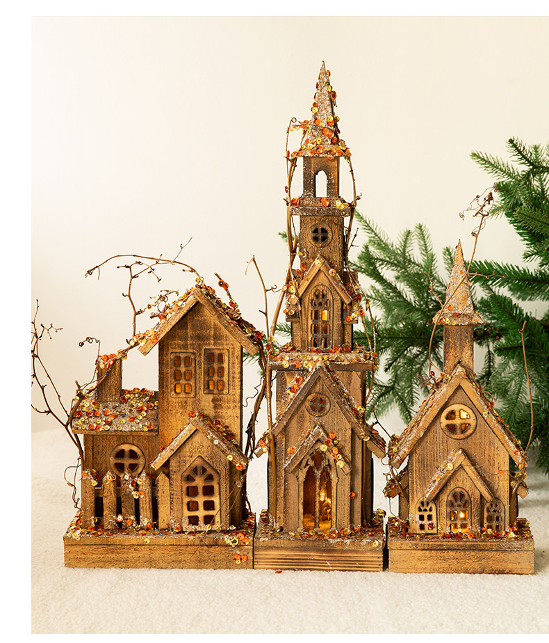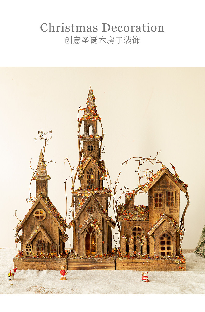 Nueva frontera Hong Kong Heng Navidad creativa madera nieve casa decoración escritorio decoración centro comercial ventana escena diseño
