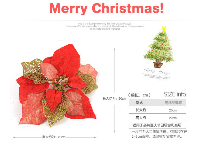 20cm de múltiples capas de simulación de Navidad flor hueco tela pegajosa de oro rosa flor falsa decoración de Navidad de ratán Flor de Navidad