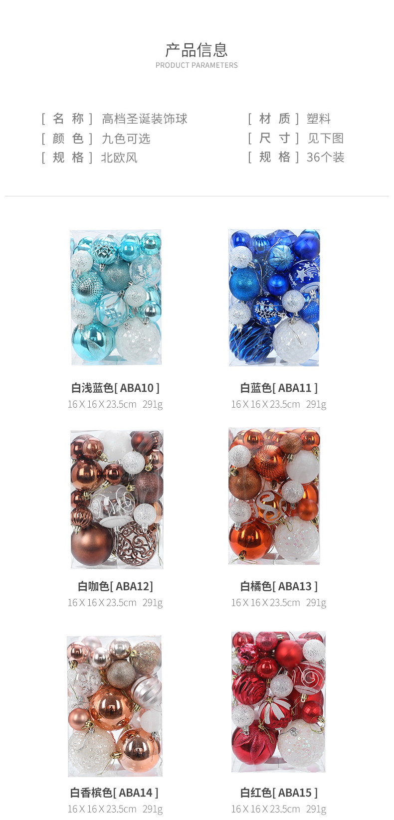 Hang Seng árbol de Navidad ornamento 4cm6cm8cm BOLA DE Navidad 36 barril caja de Navidad bola de color bola mixta