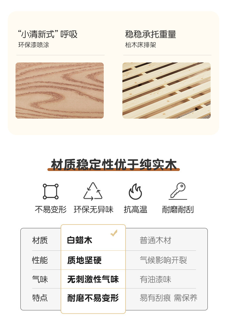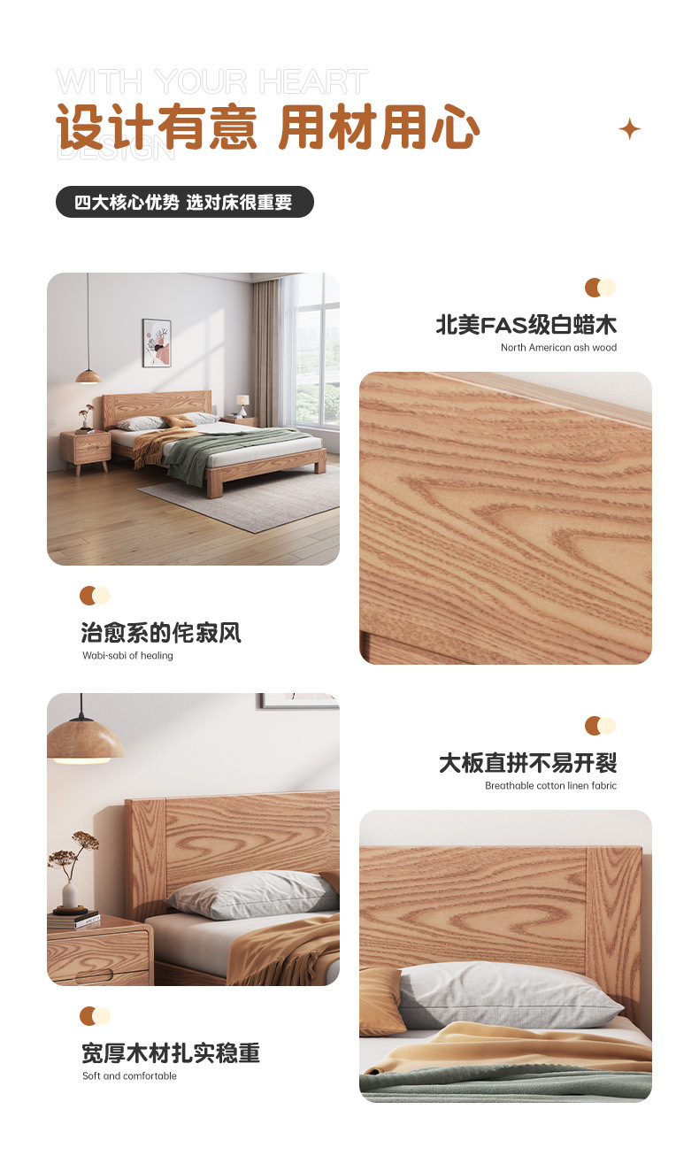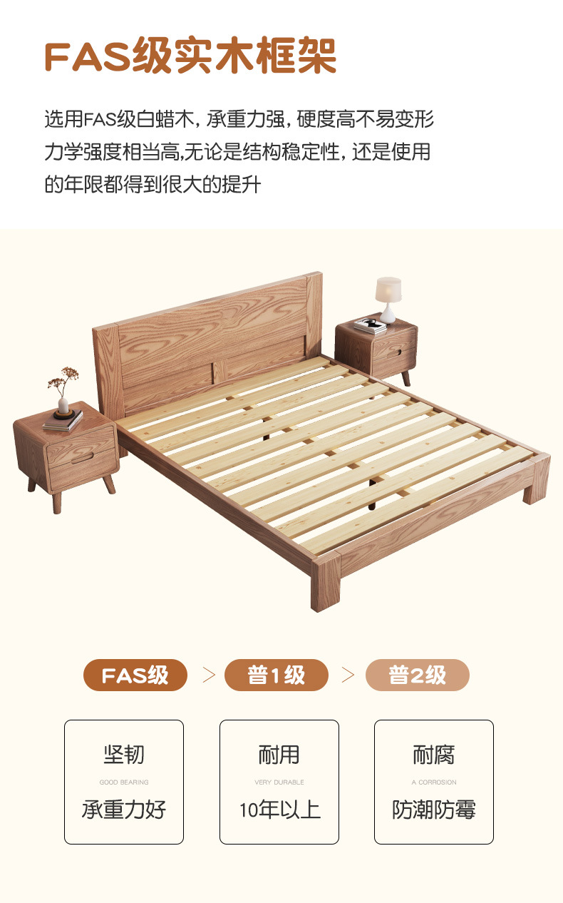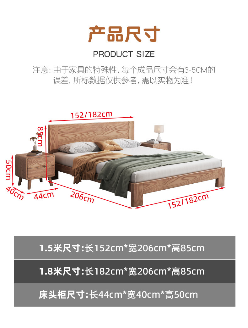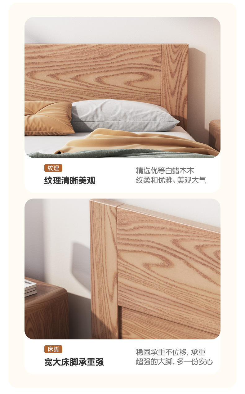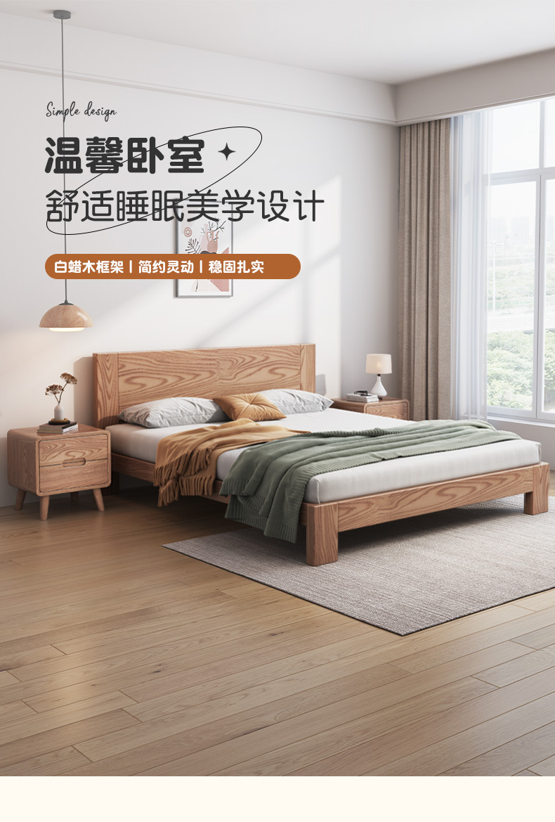 Cama nórdica cama de madera maciza de cera blanca 1,8 m moderno minimalista hogar 1,5 m dormitorio principal registro estilo individual cama de boda Doble