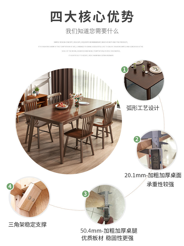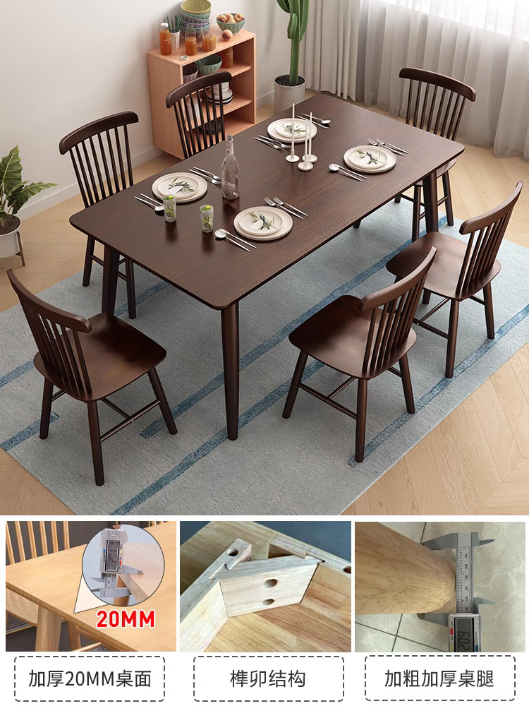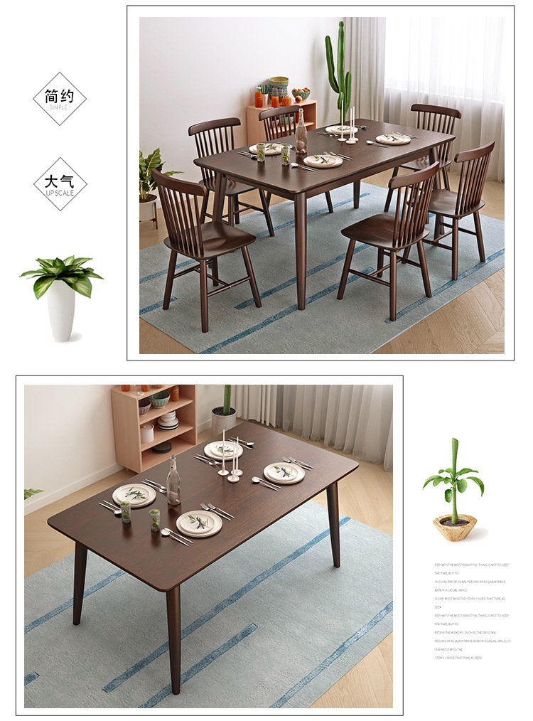 Mesa de comedor de madera sólida nórdica simple, pequeña mesa de comedor de madera sólida doméstica, mesa de comedor japonesa, mesa rectangular combinada