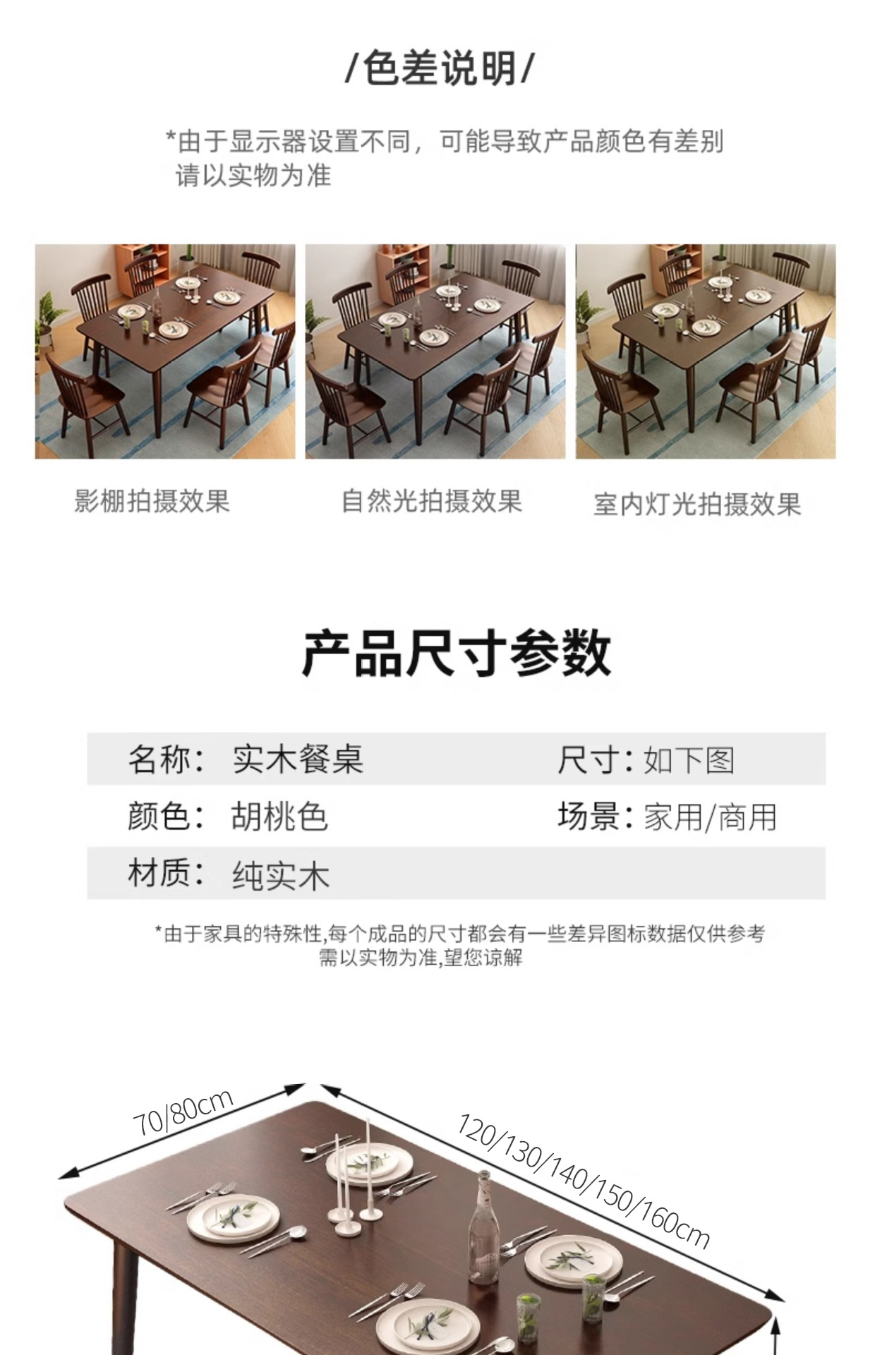 Mesa única de madera maciza de 1,3 metros (madera maciza importada de tailandia)