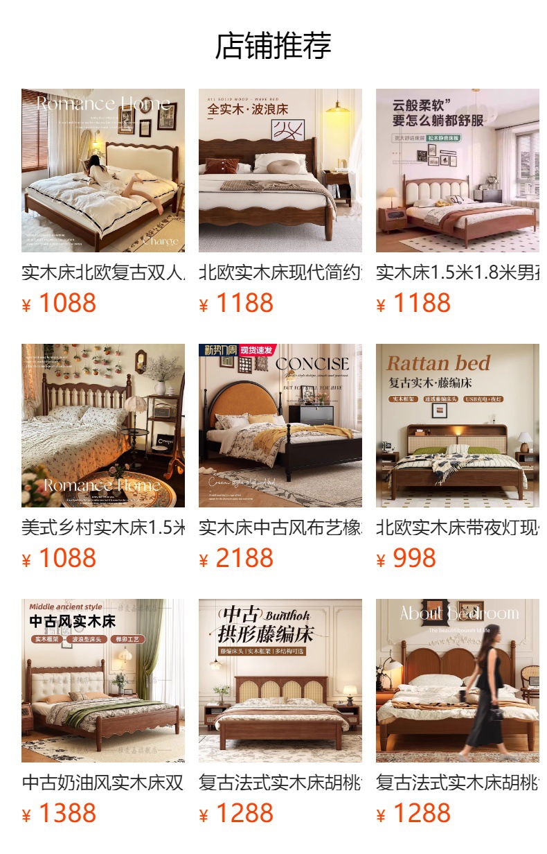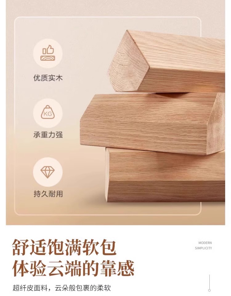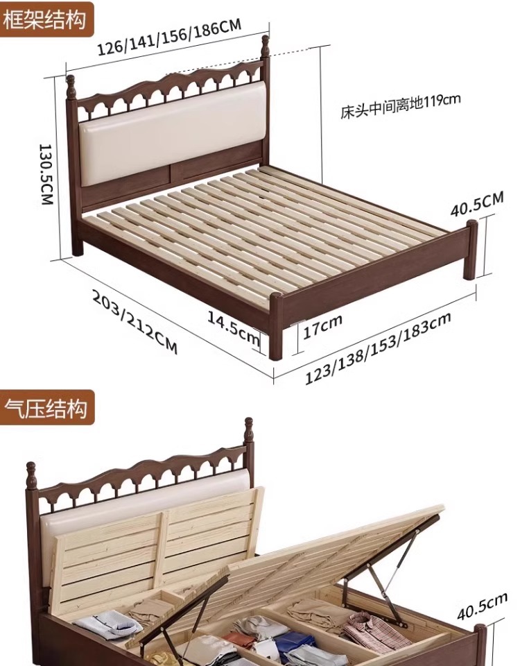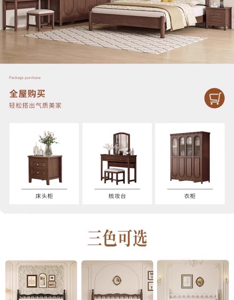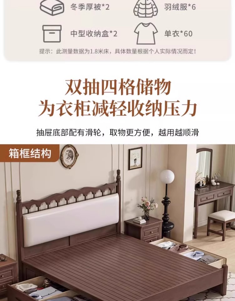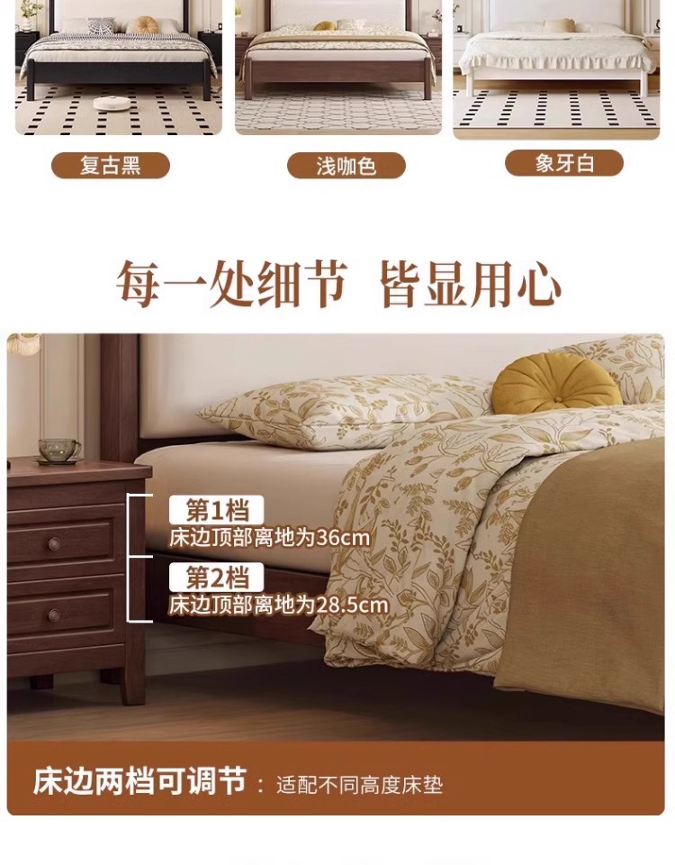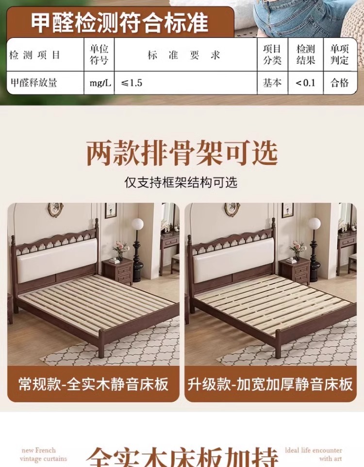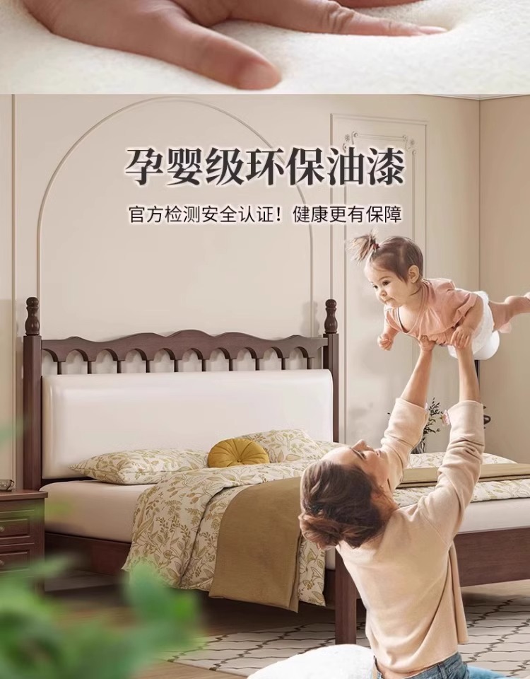 Cama de madera sólida retro nórdica 1.8m moderna simple cama doble dormitorio principal 1.5 cama ondulada de estilo medieval cama de matrimonio