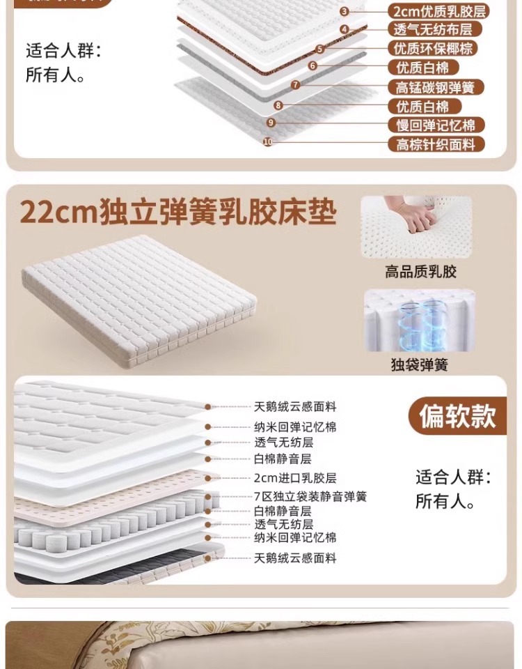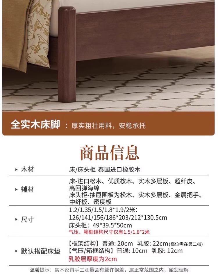 Cama de madera maciza de 1,8 metros + colchón de látex de protección de cresta de 22cm