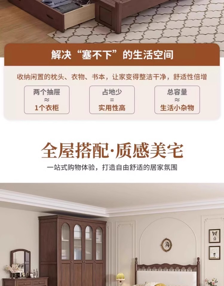 Cama de madera maciza de 1,8 metros + Mesa de noche 1