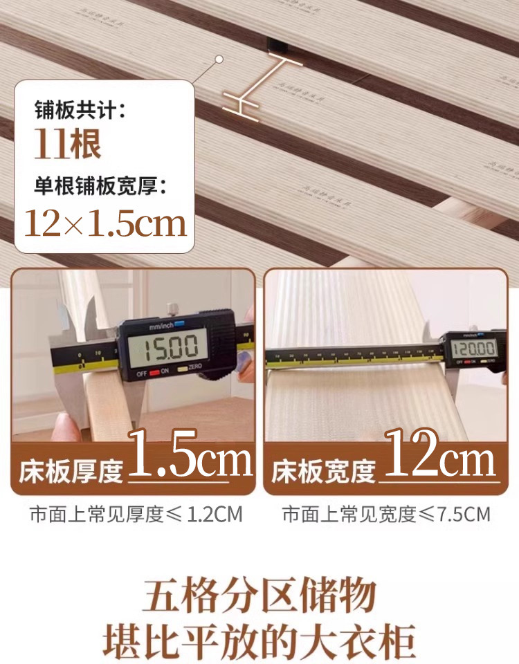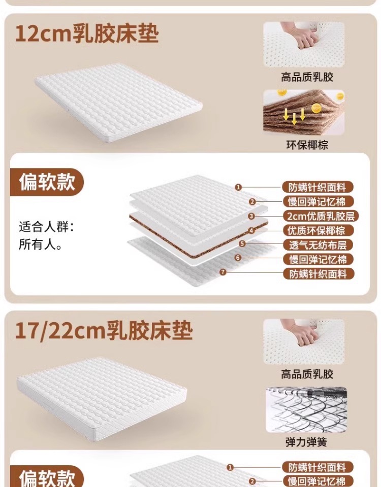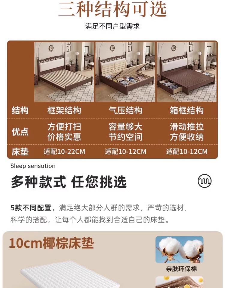 Cama de madera maciza de 1,5 metros + colchón de látex de protección de cresta de 22cm