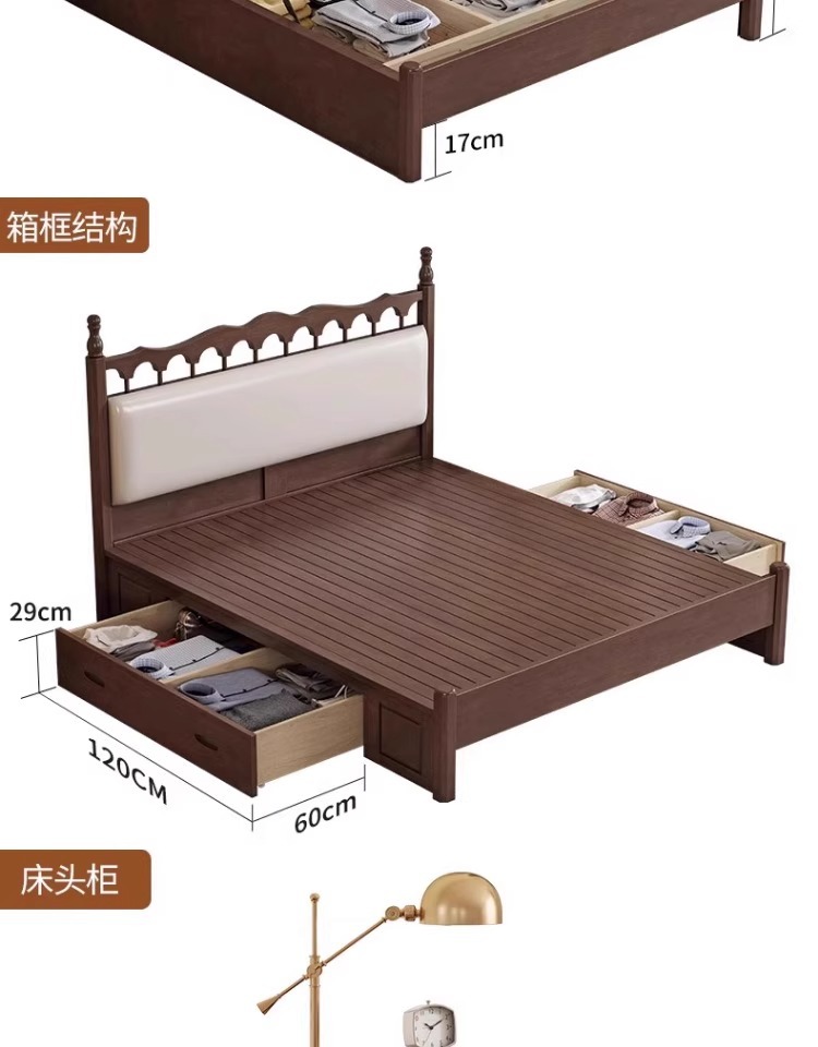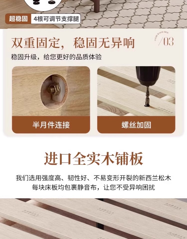 Cama de madera maciza de 1,5 metros + Mesa de noche 1
