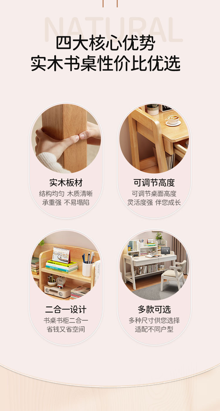 Mesa de estudio de niños de madera maciza mesa de escritorio estante de escritorio de escritorio de dormitorio de estudiantes de secundaria y secundaria