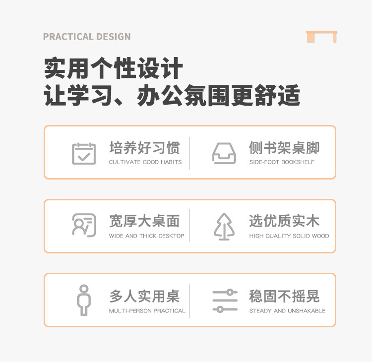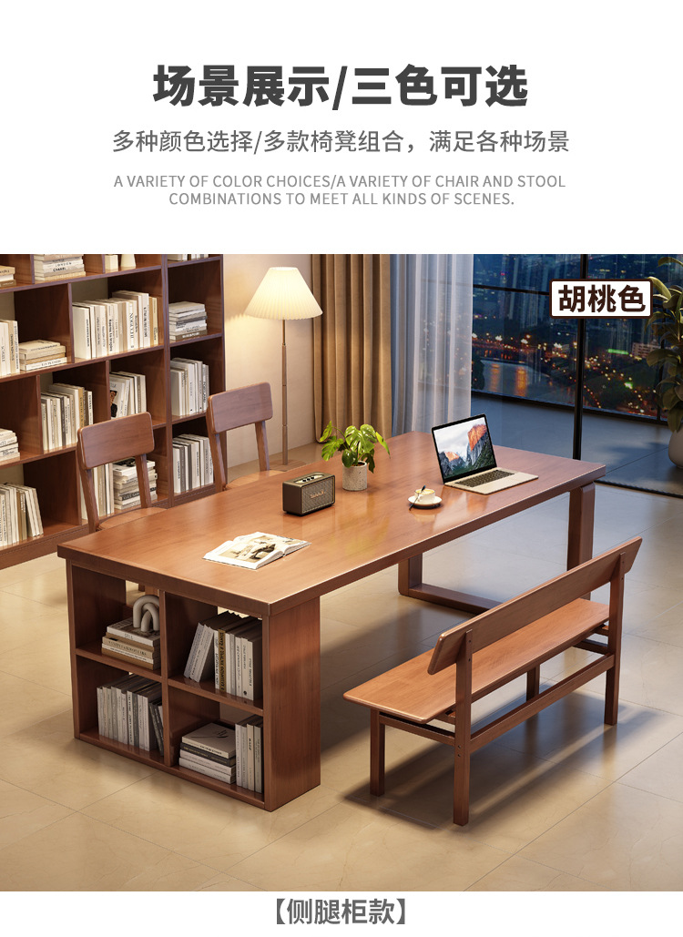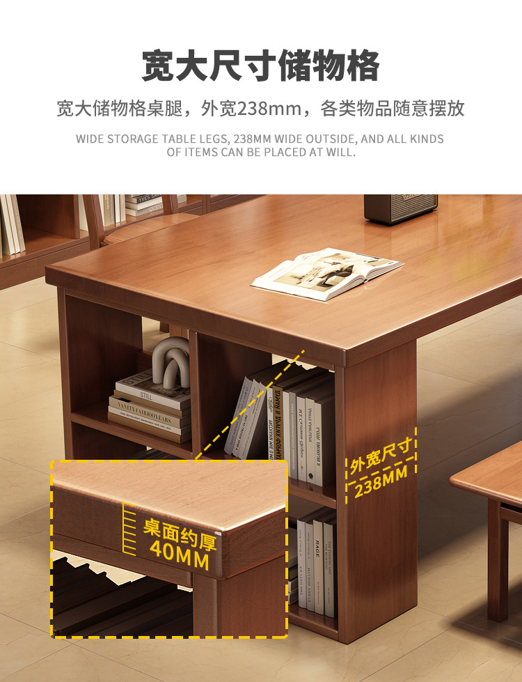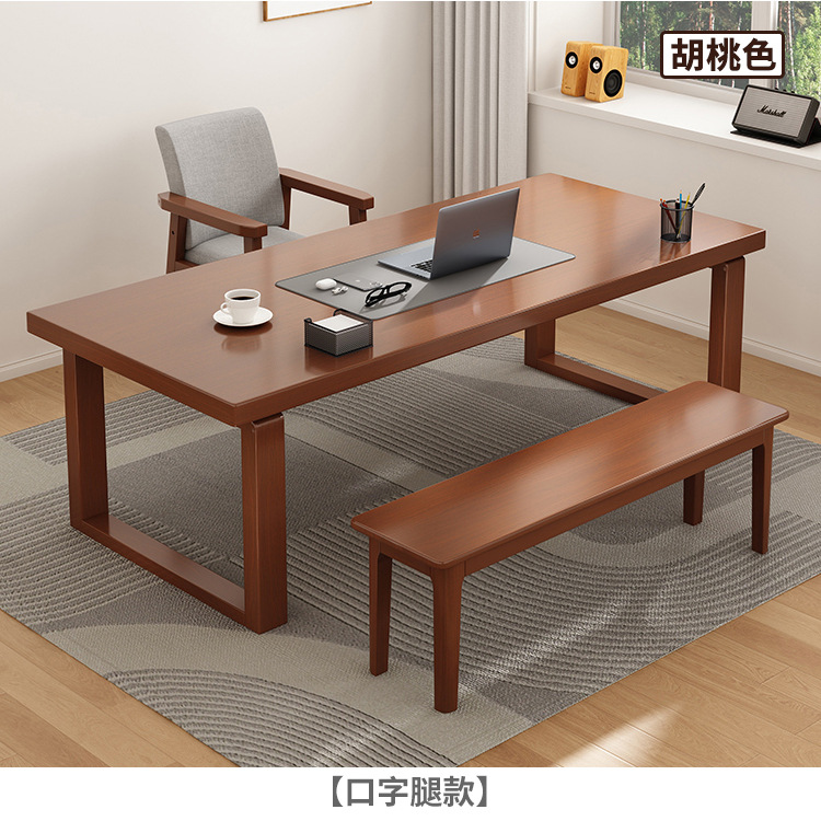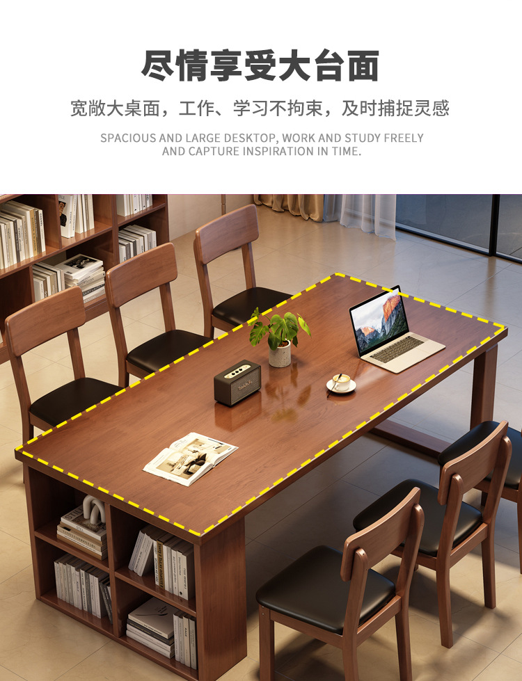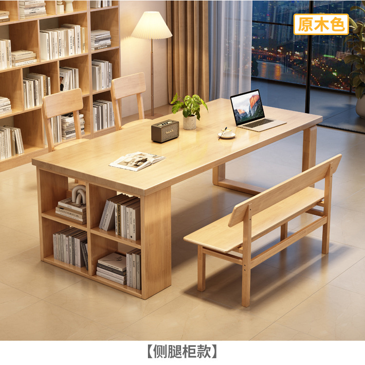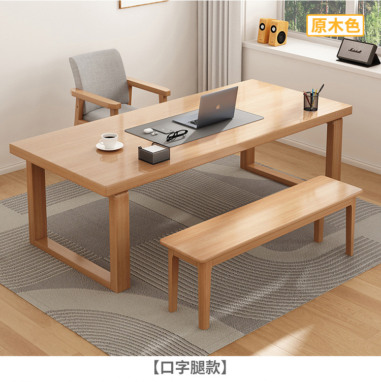 Nórdico simple y moderno de madera sólida gruesa y ensanchada mesa de escritorio de lectura y estudio mesa de comedor en uno