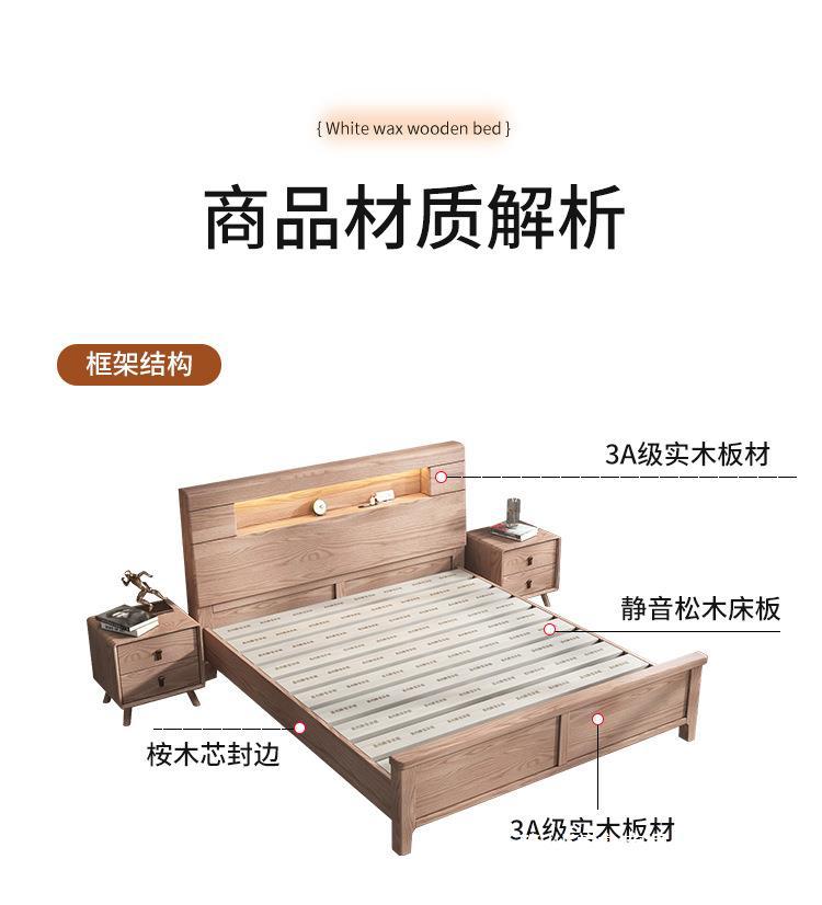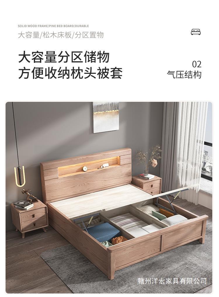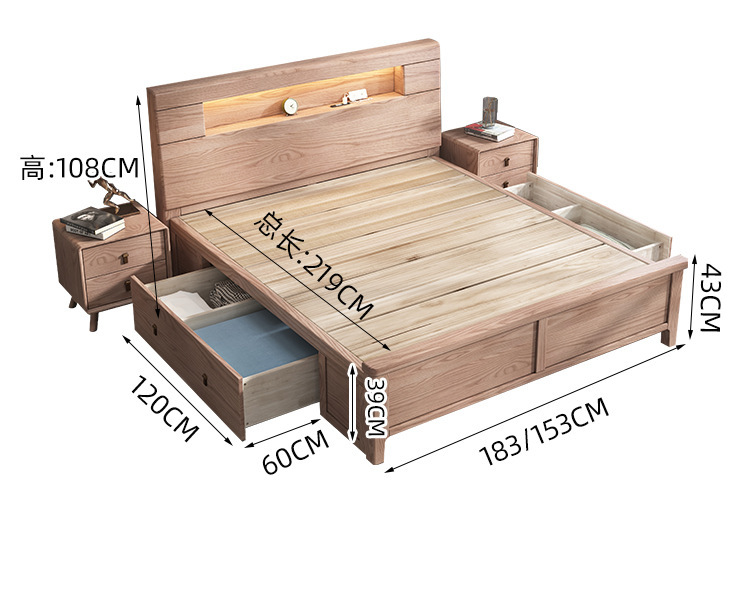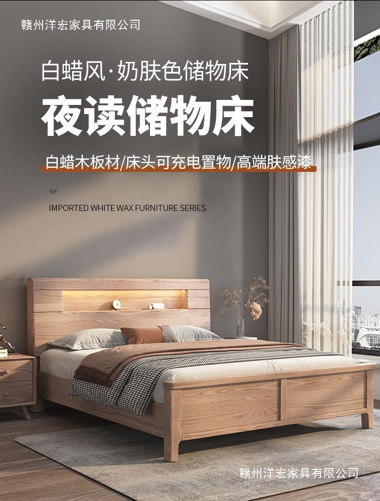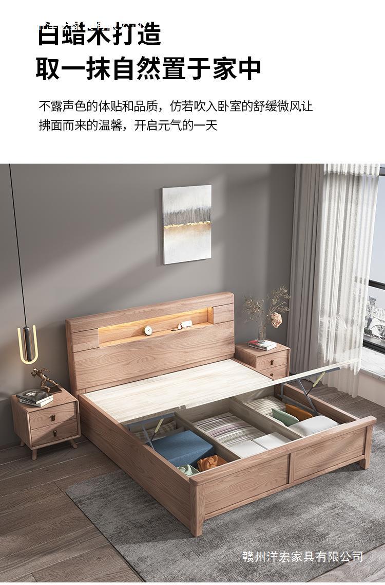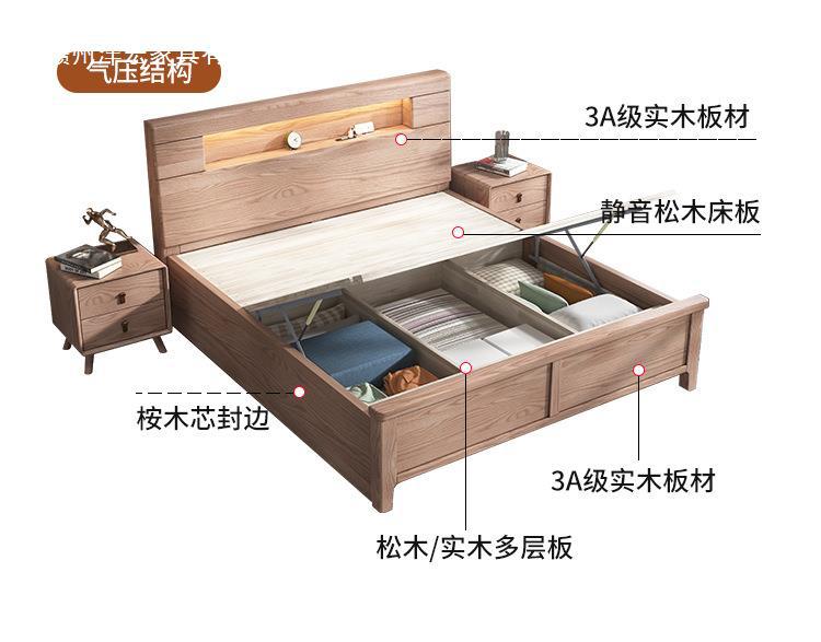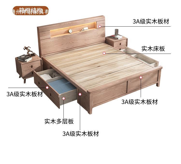Cama de madera de cera blanca cama de madera maciza dormitorio principal 1,8 registro nórdico moderno estilo minimalista cama de madera maciza cama de presión de aire con cajón