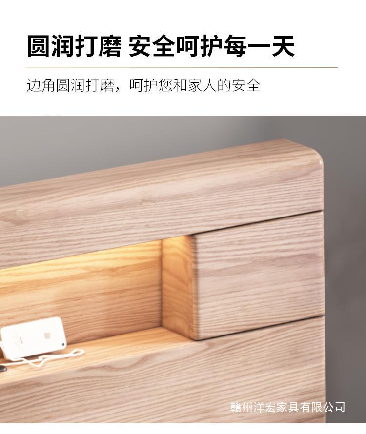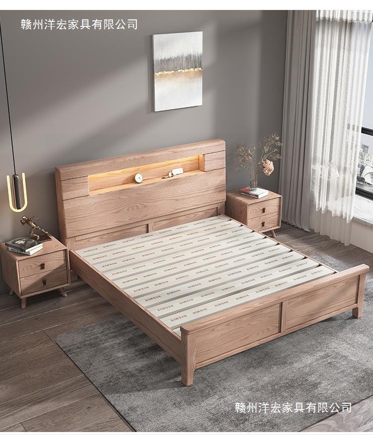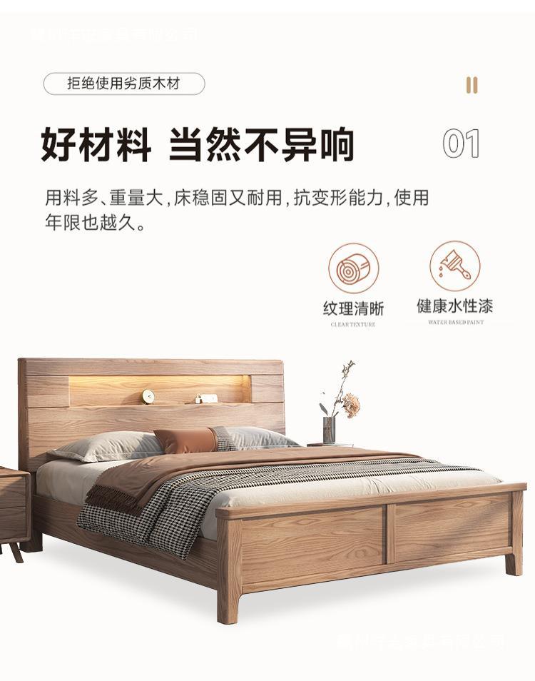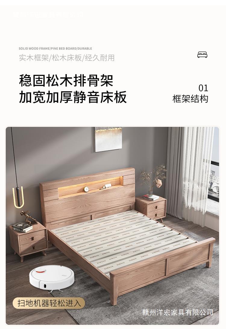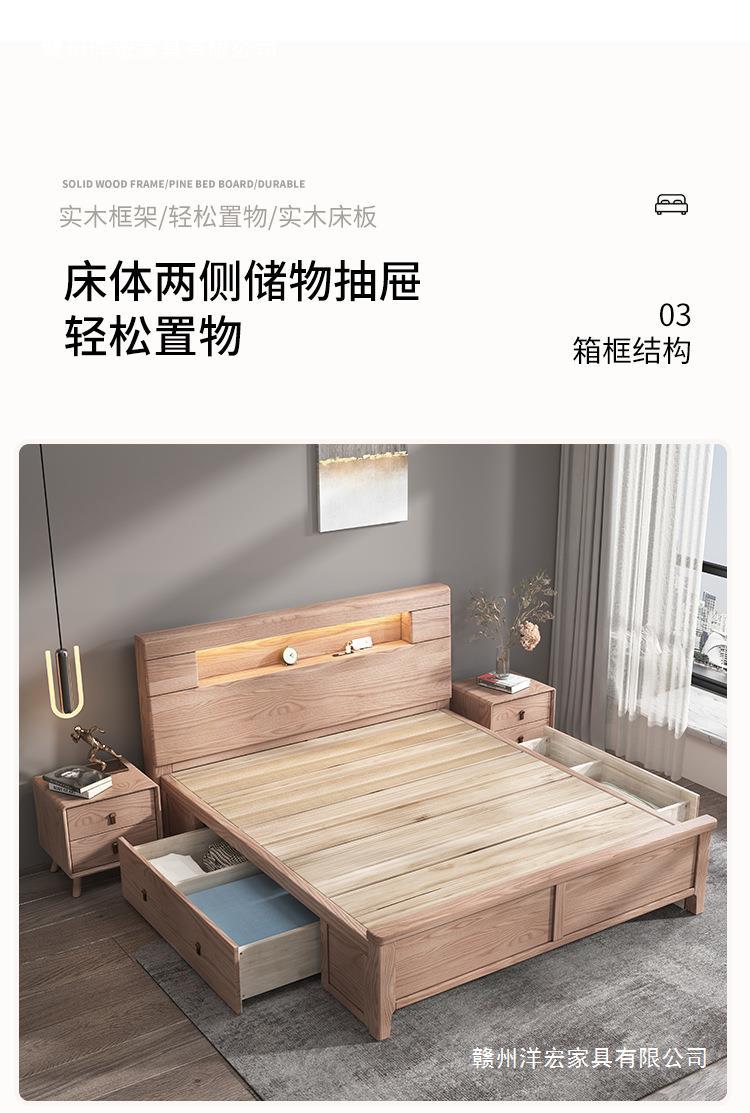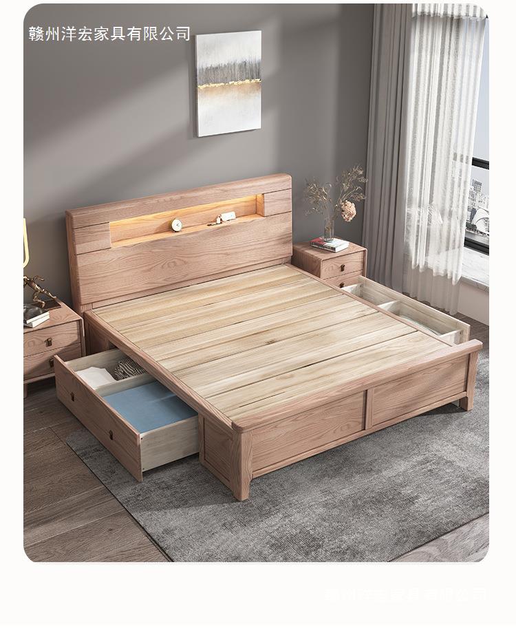 Cama de madera de cera blanca cama de madera maciza dormitorio principal 1,8 registro nórdico moderno estilo minimalista cama de madera maciza cama de presión de aire con cajón