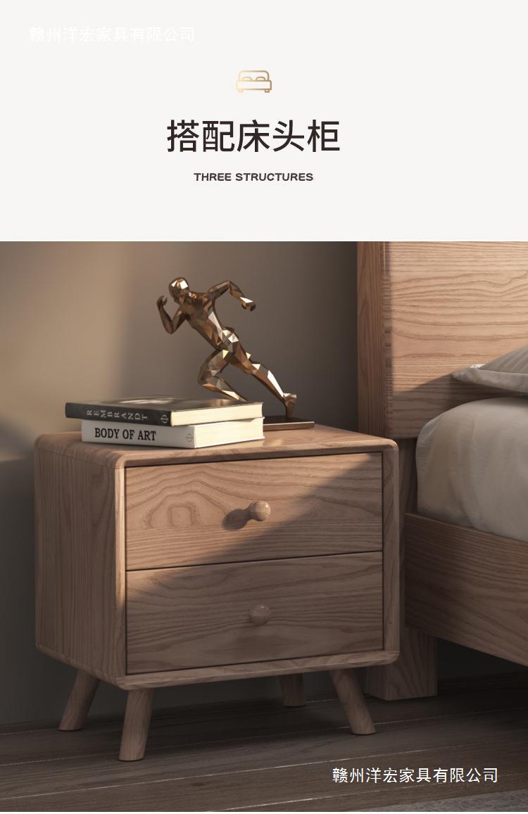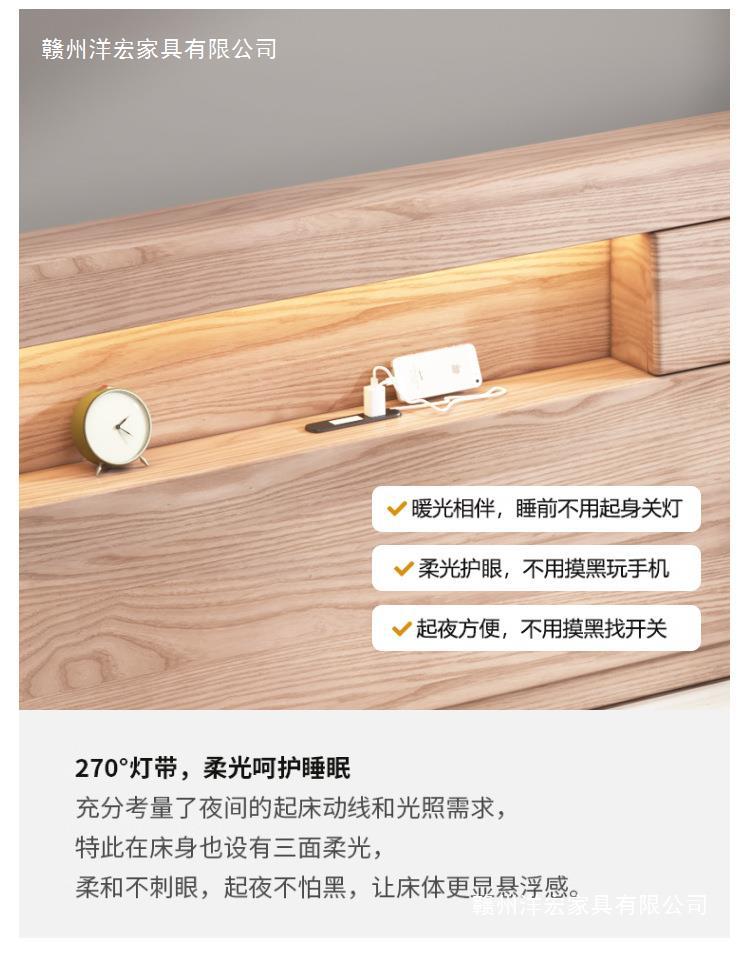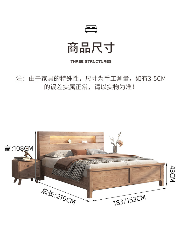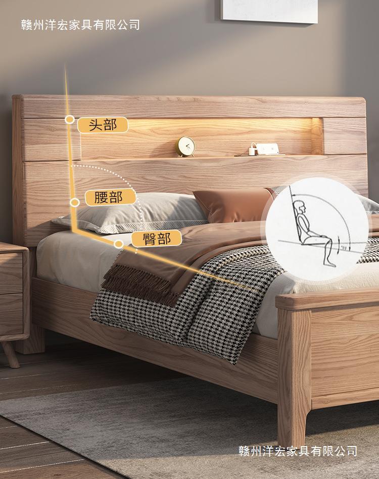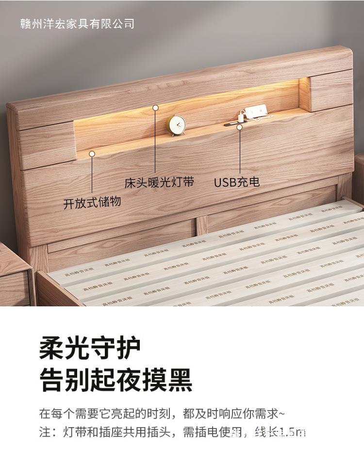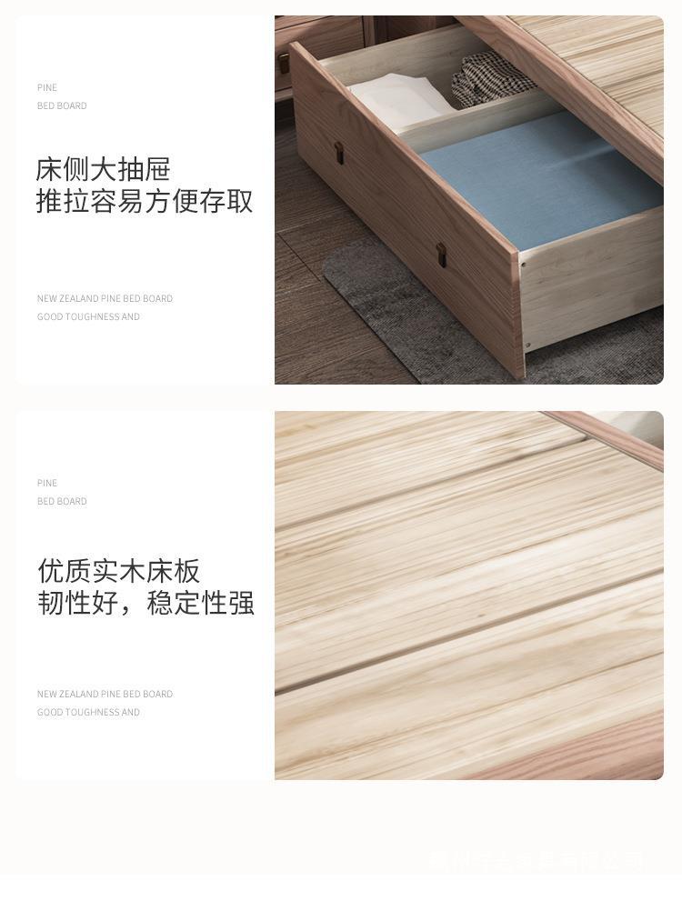 Cama de madera de cera blanca cama de madera maciza dormitorio principal 1,8 registro nórdico moderno estilo minimalista cama de madera maciza cama de presión de aire con cajón