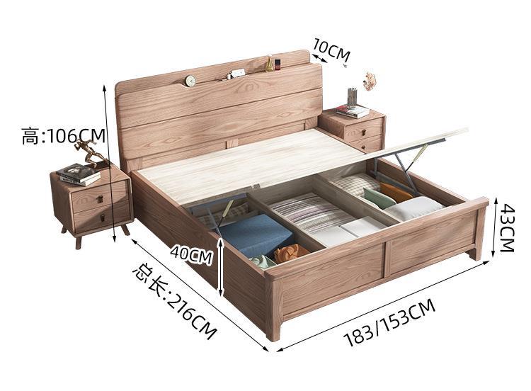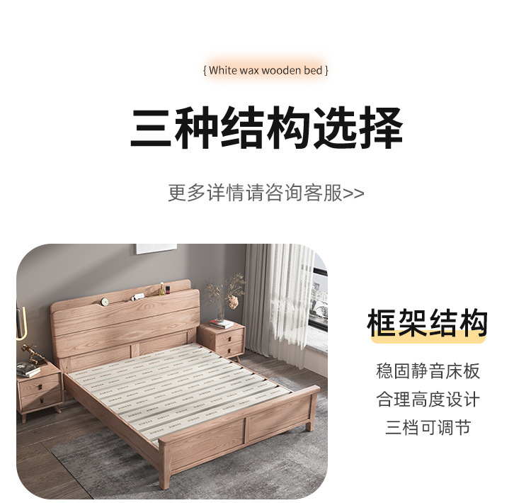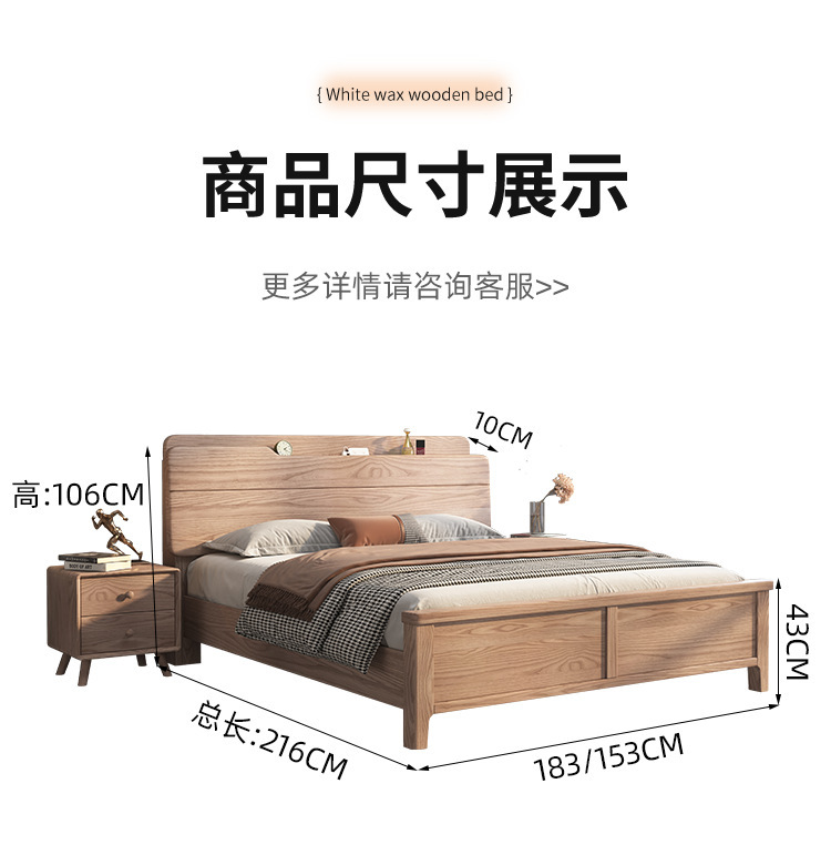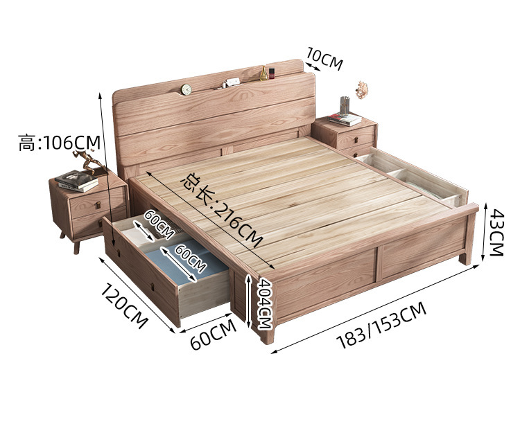 Cama completa de madera maciza registro nórdico cama de cera blanca 1,8 m cama doble moderna simple 1,5 m cama de almacenamiento en el hogar