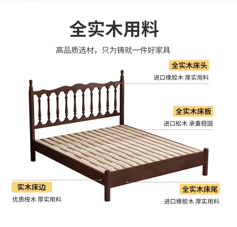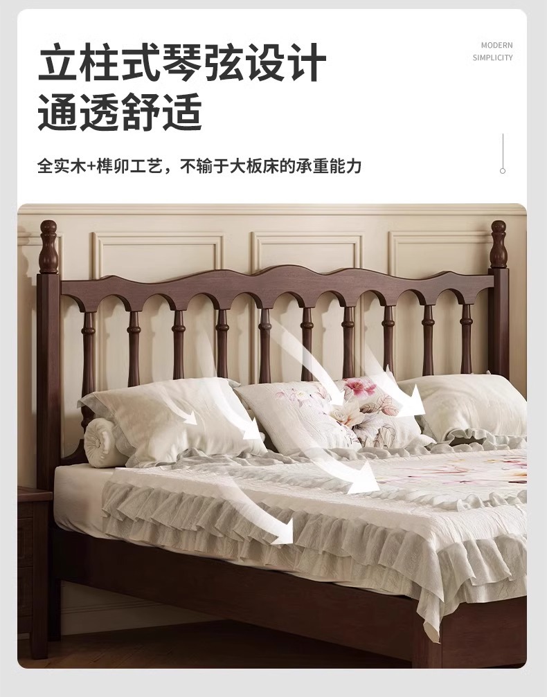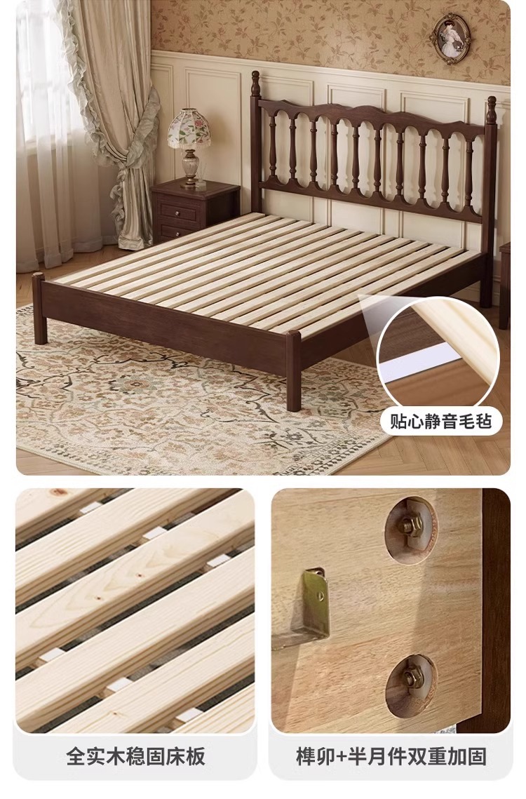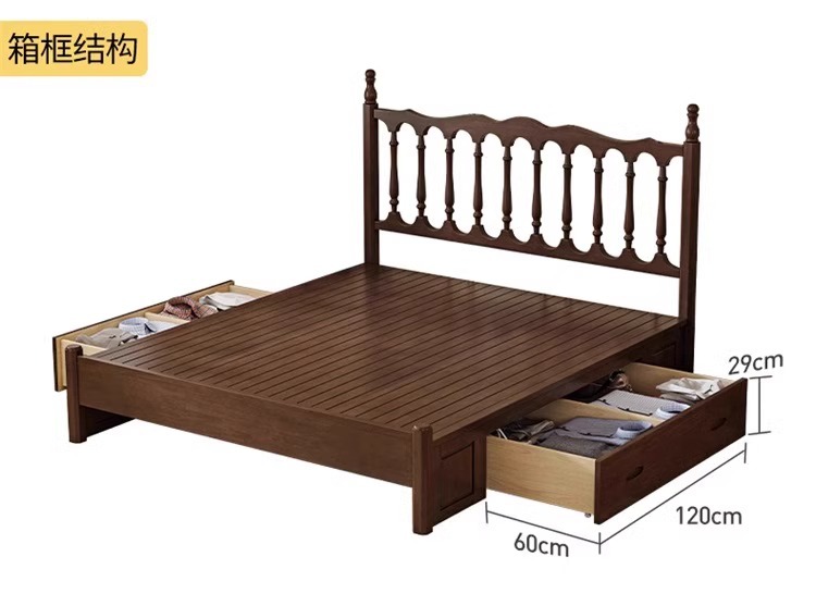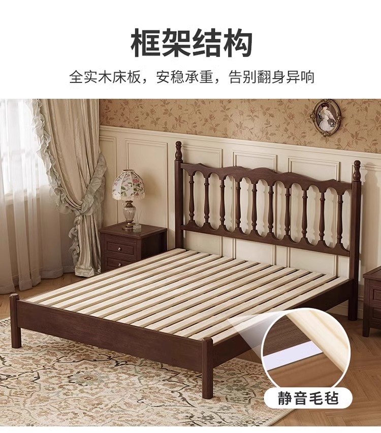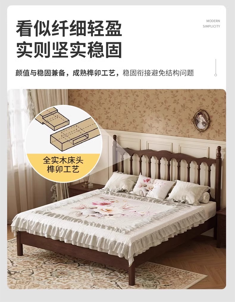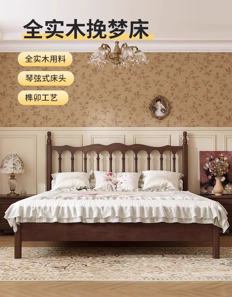 Cama de madera maciza de estilo americano de campo de 1.5m moderna simple retro francesa de 1.8m cama doble cama Windsor duradera