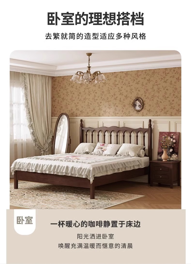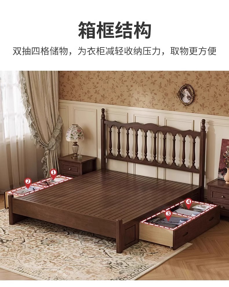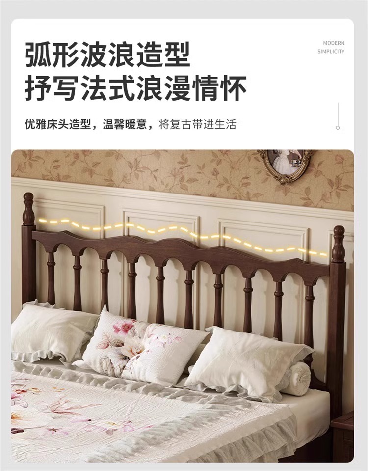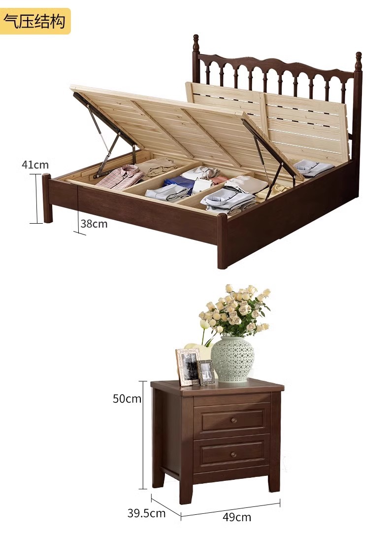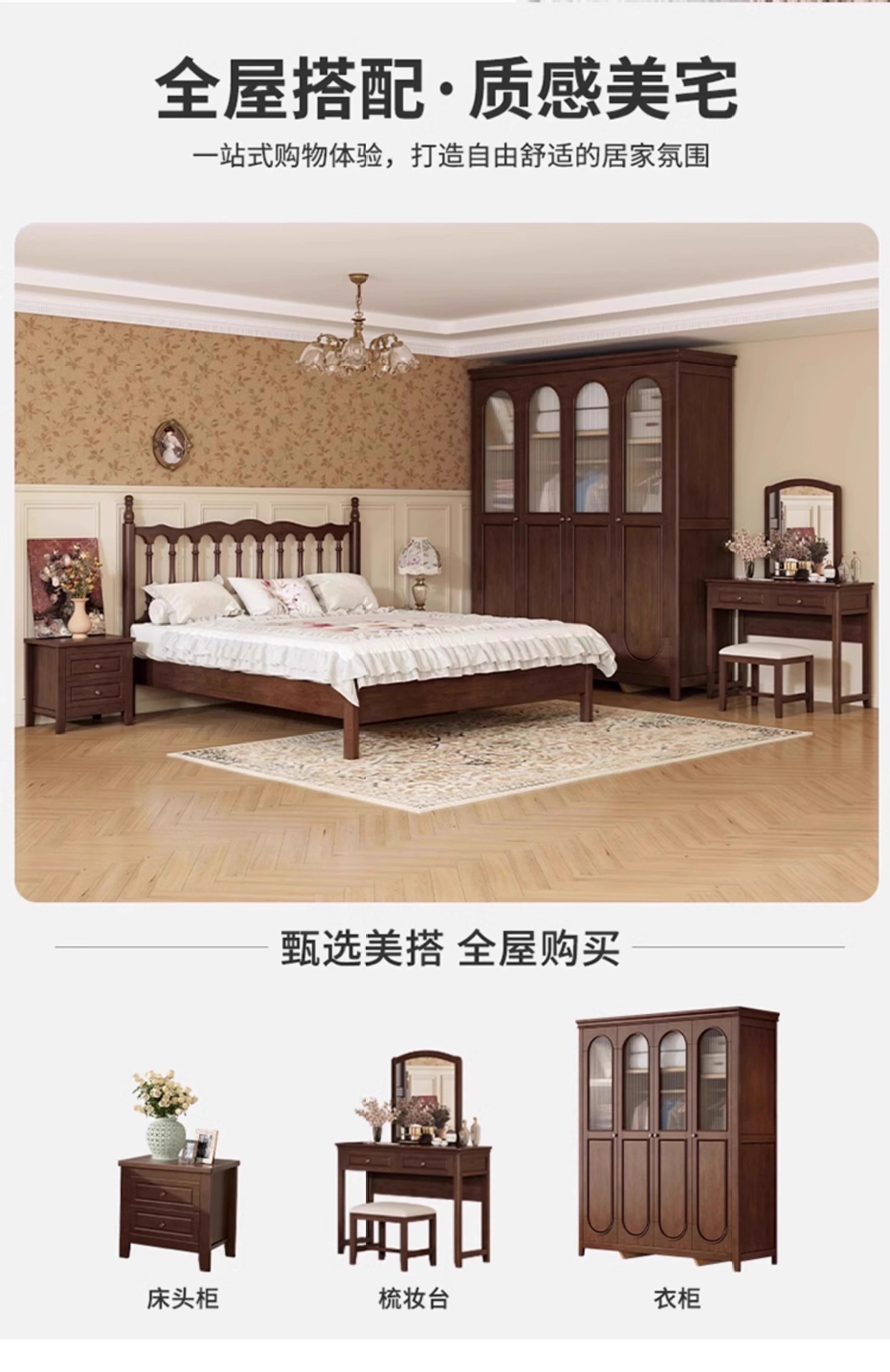 Cama de madera maciza de estilo americano de campo de 1.5m moderna simple retro francesa de 1.8m cama doble cama Windsor duradera