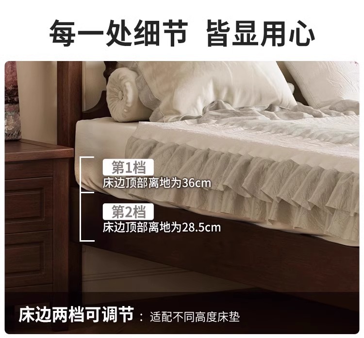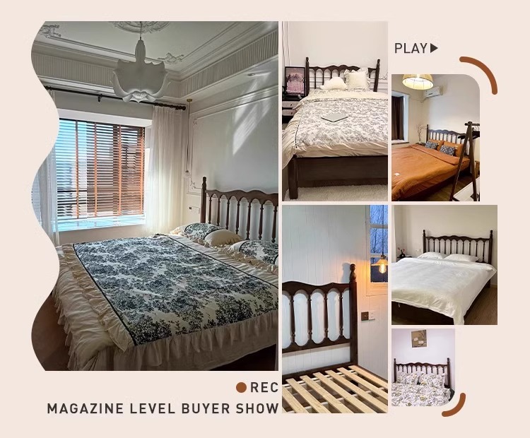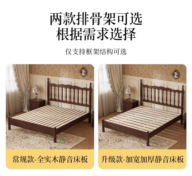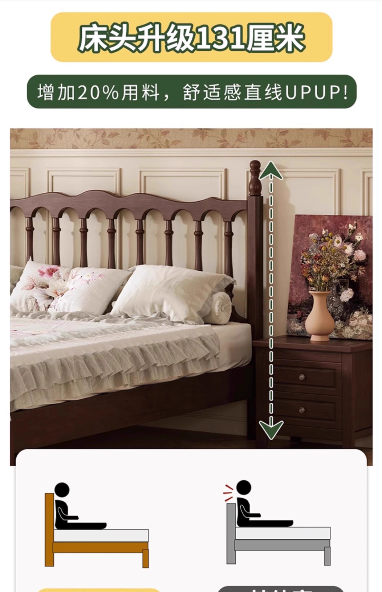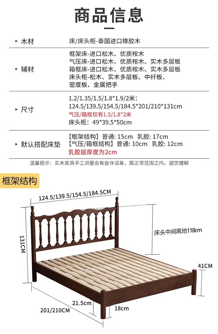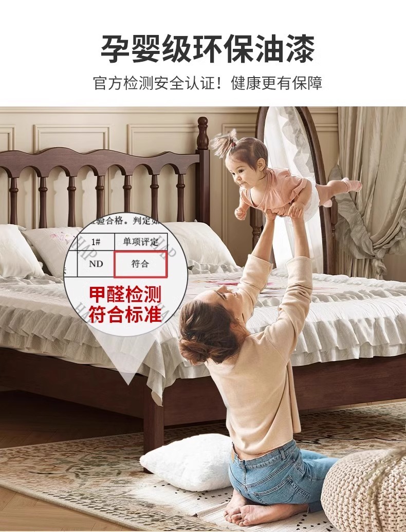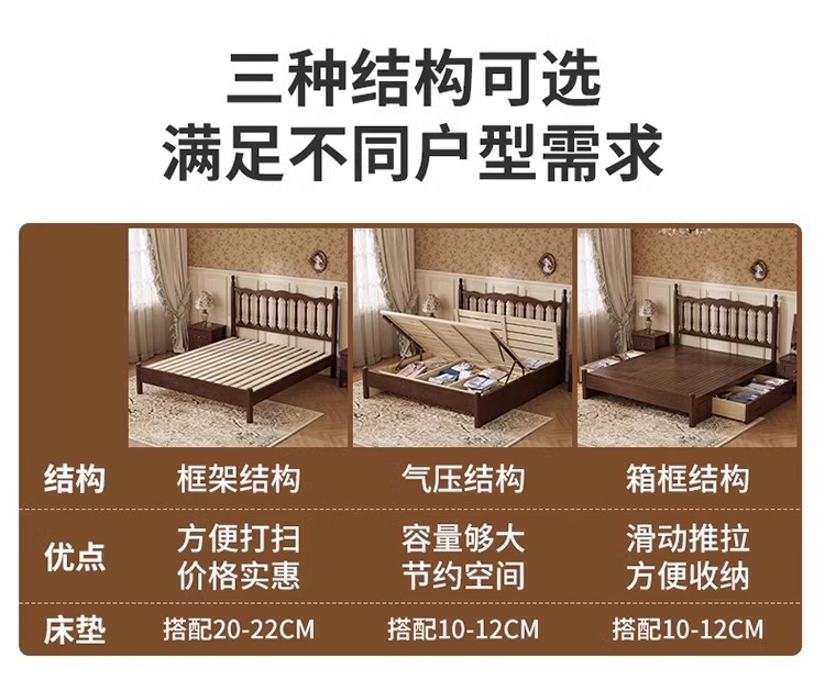 Cama de madera maciza de estilo americano de campo de 1.5m moderna simple retro francesa de 1.8m cama doble cama Windsor duradera