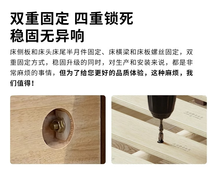 Cama de madera maciza de 1,5 metros + Mesa de noche 1
