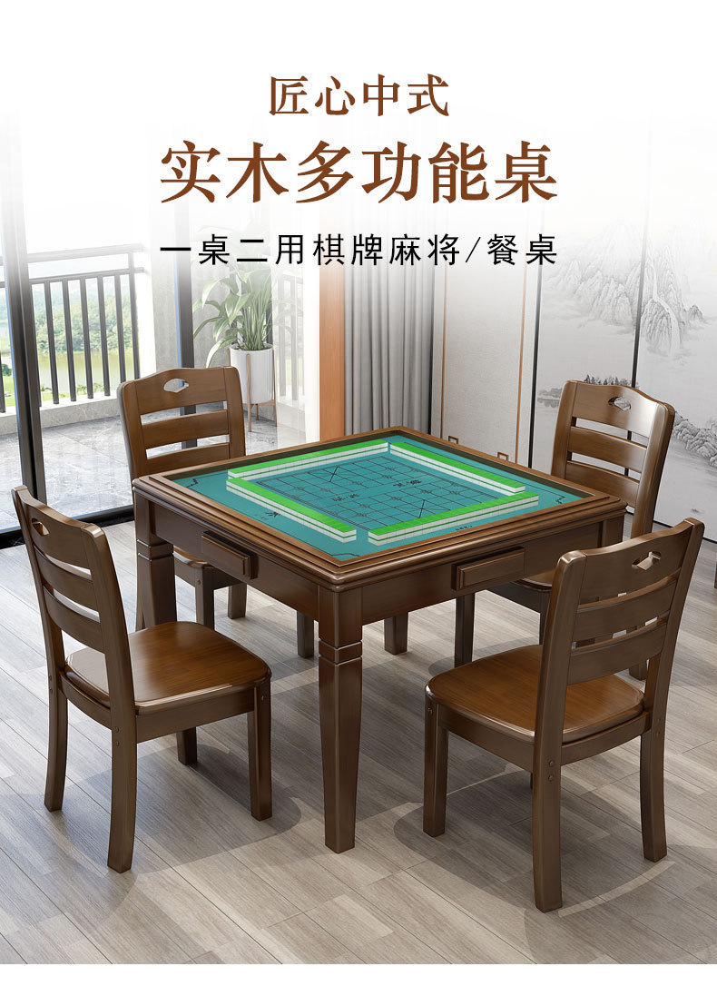 Mesa de Mahjong de madera maciza mesa de comedor de Ajedrez de doble uso moderno simple plegable hogar simple mesa de ajedrez manual y combinación de silla