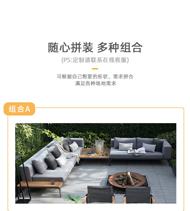 Muebles de exterior al aire libre combinación de sofá de ocio al aire libre patio balcón villa jardín madera maciza combinación de sofá de esquina
