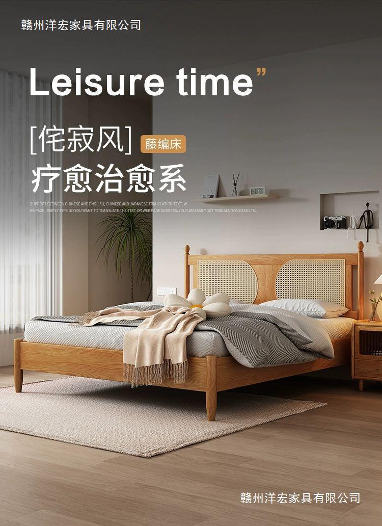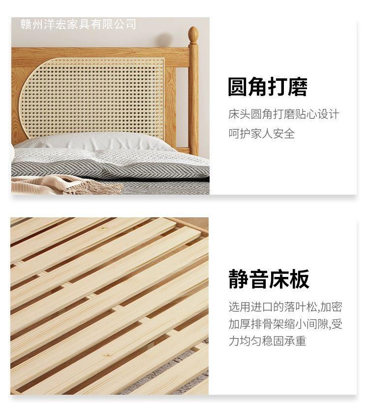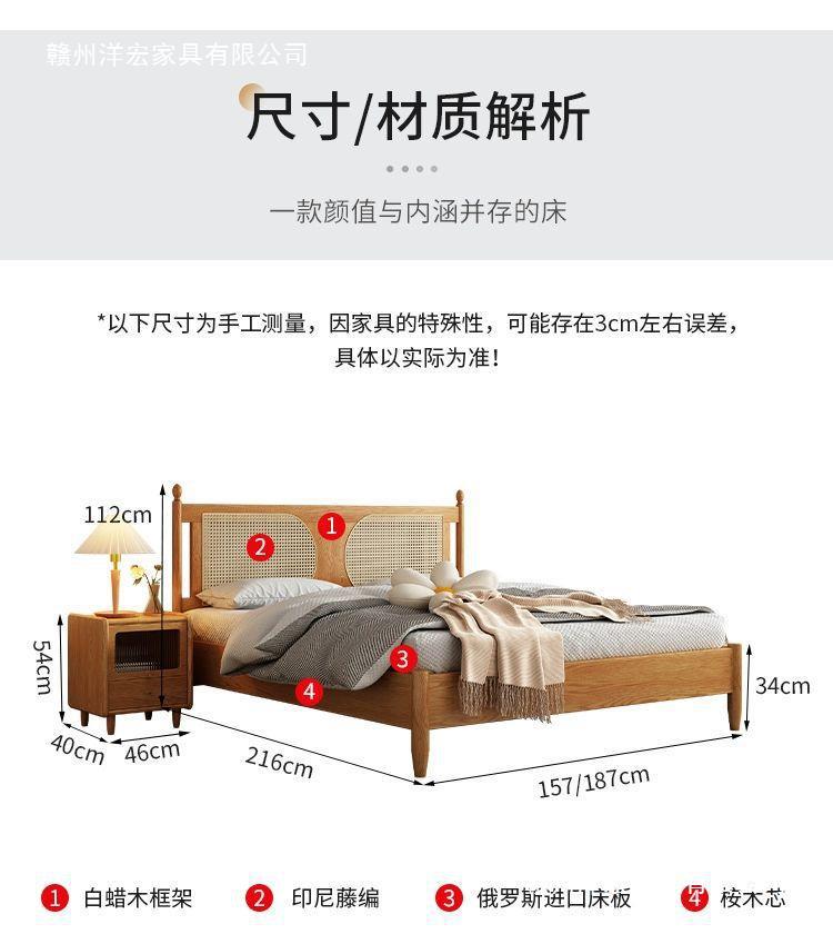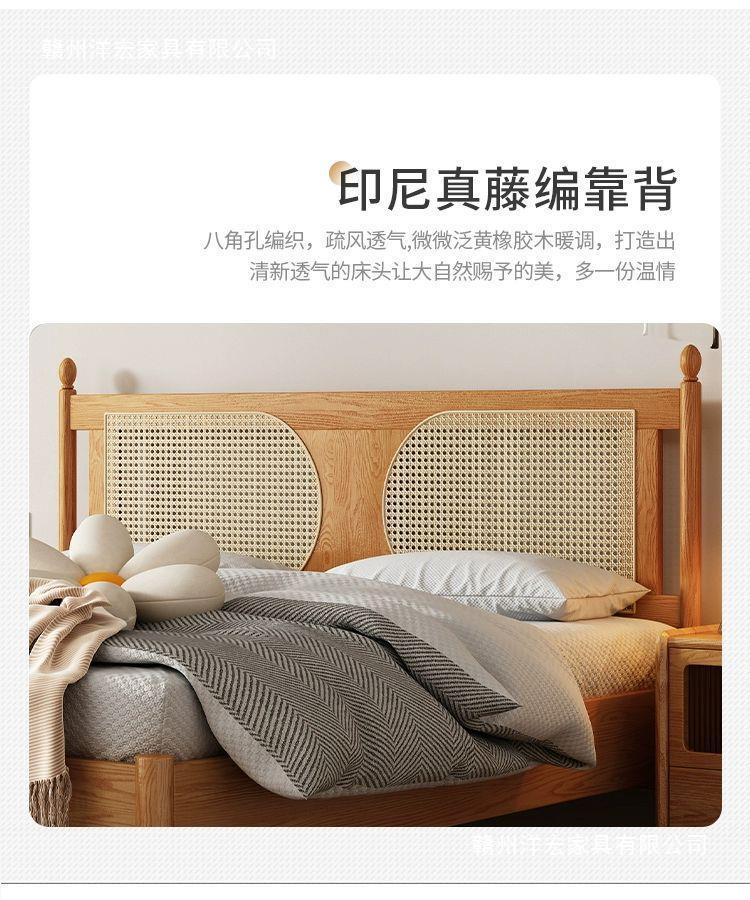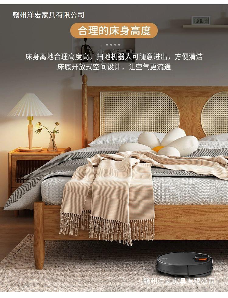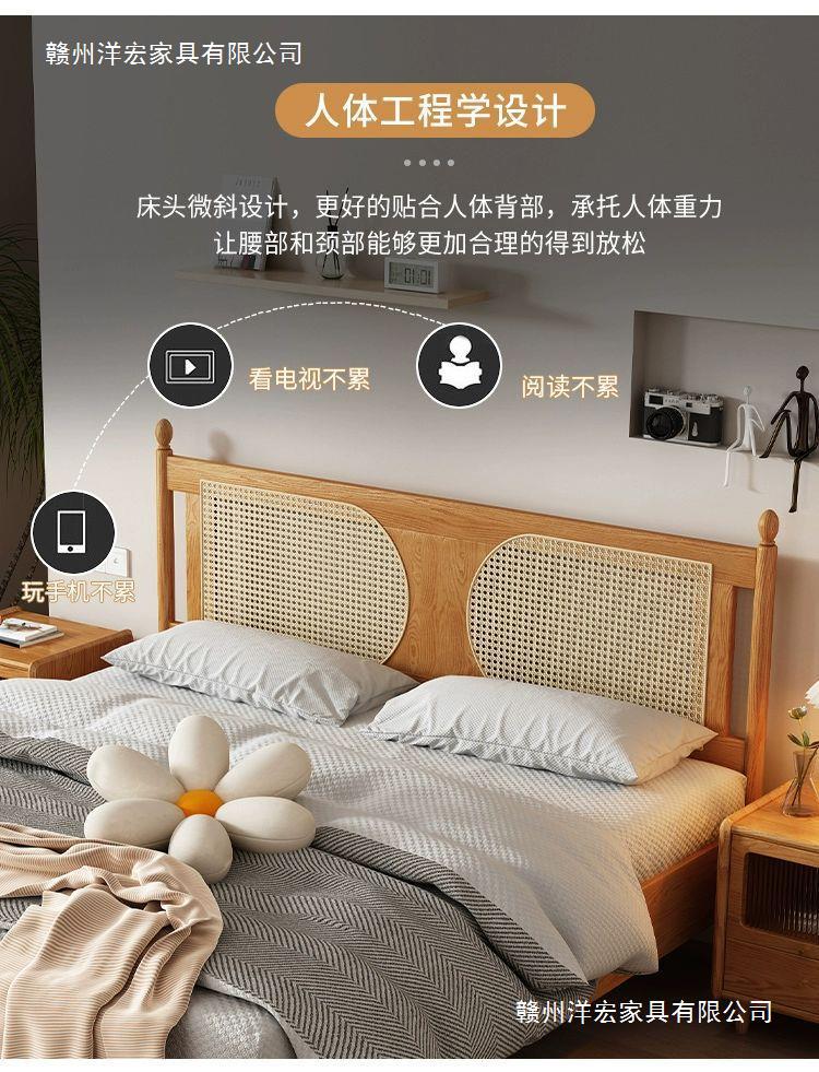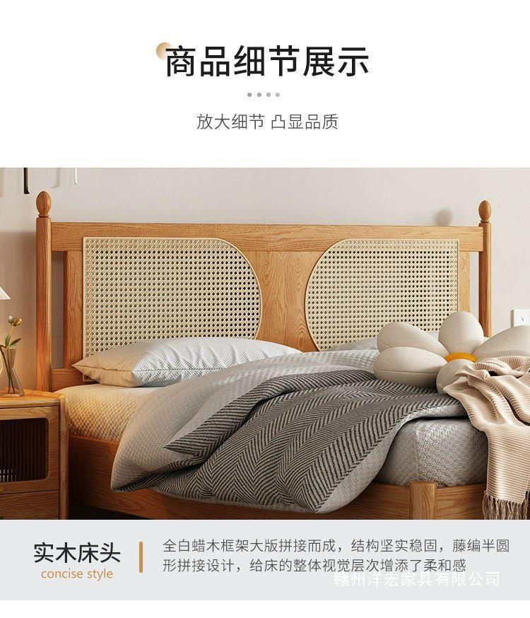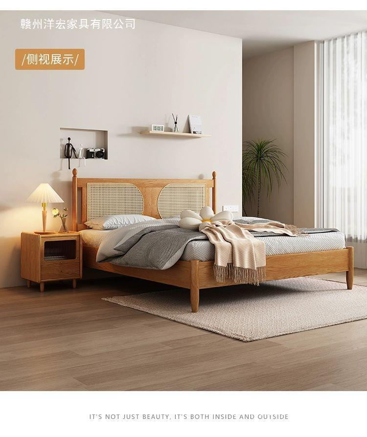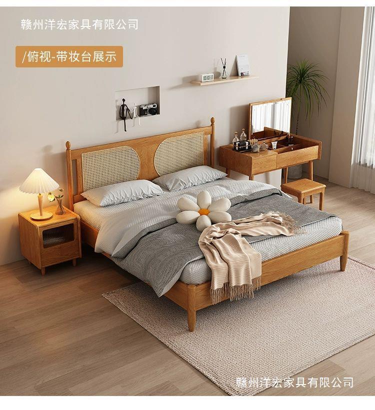 Nórdico blanco cera madera ratán cama 1,8 B & B retro japonés moderno minimalista registro estilo ratán cama doble
