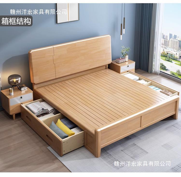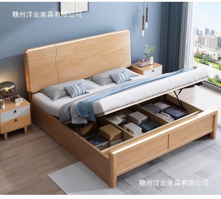Cama de madera maciza completa moderna minimalista nórdica cama doble 1.5 m1.8 M presión de aire alta caja cama de almacenamiento cama directa de fábrica
